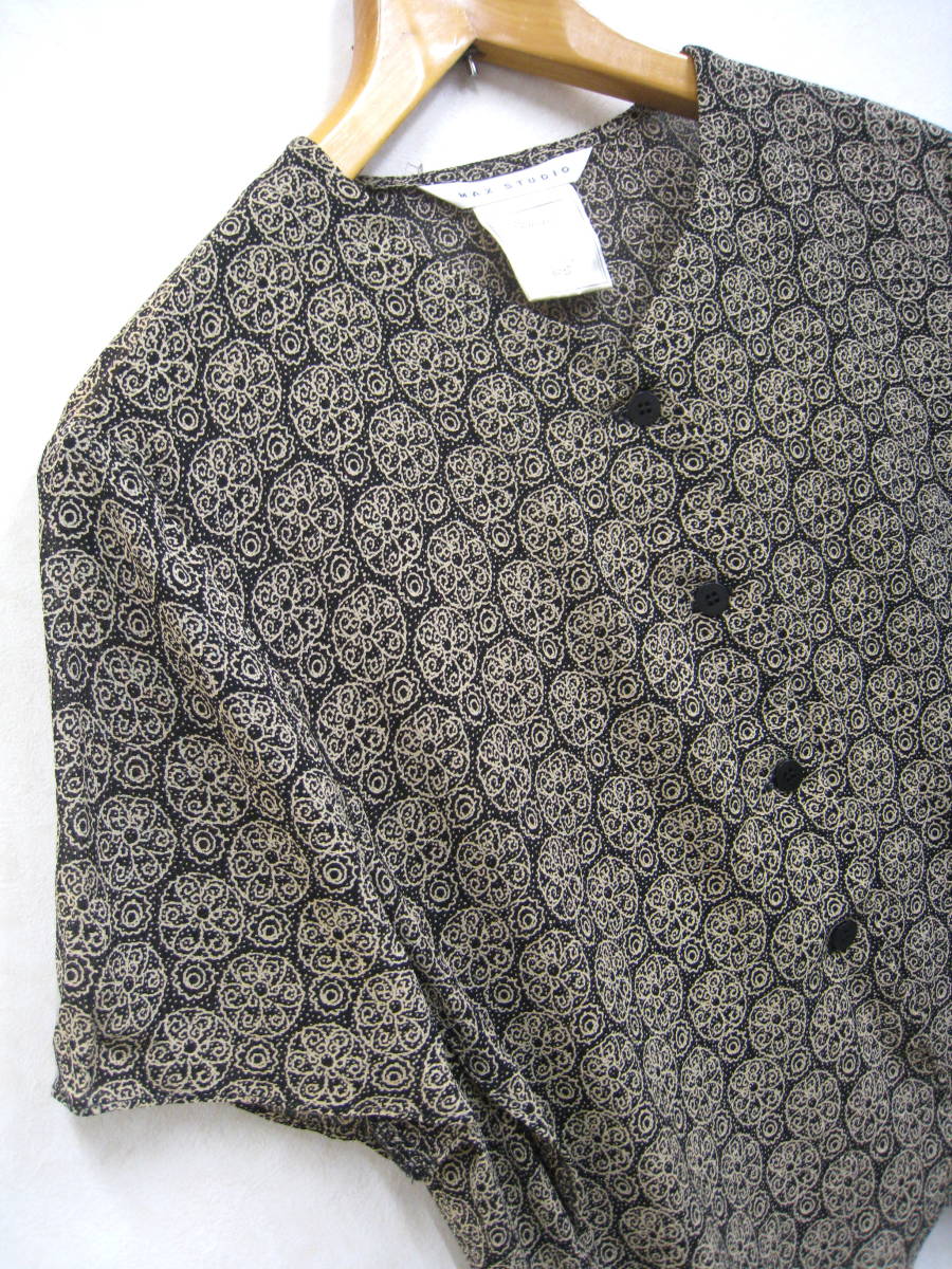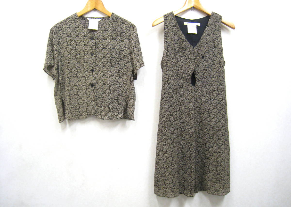 MAX STUDIO■マックススタジオ USA製 レーヨン100% 総柄 アンサンブル ブラウス サイズL ドレス ワンピース サイズM レディース