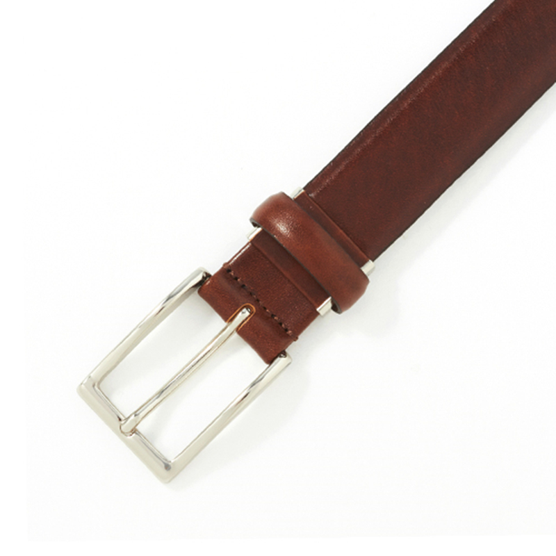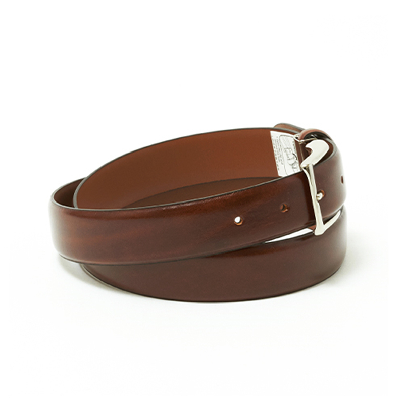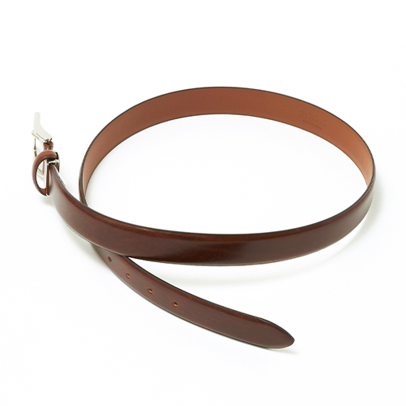 「革の表情を生かしたステッチレスデザインのミカドベルト」
