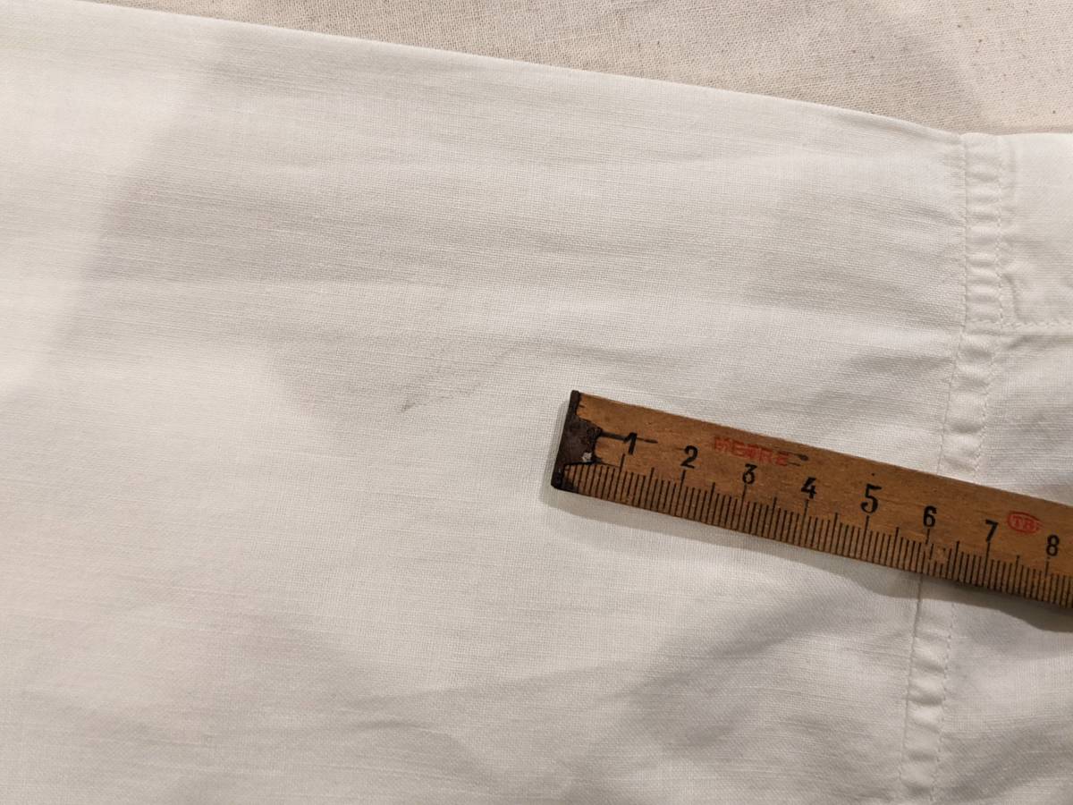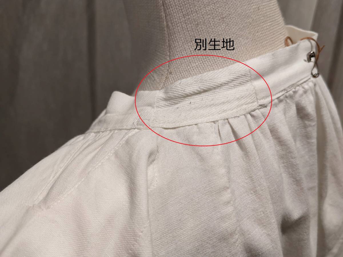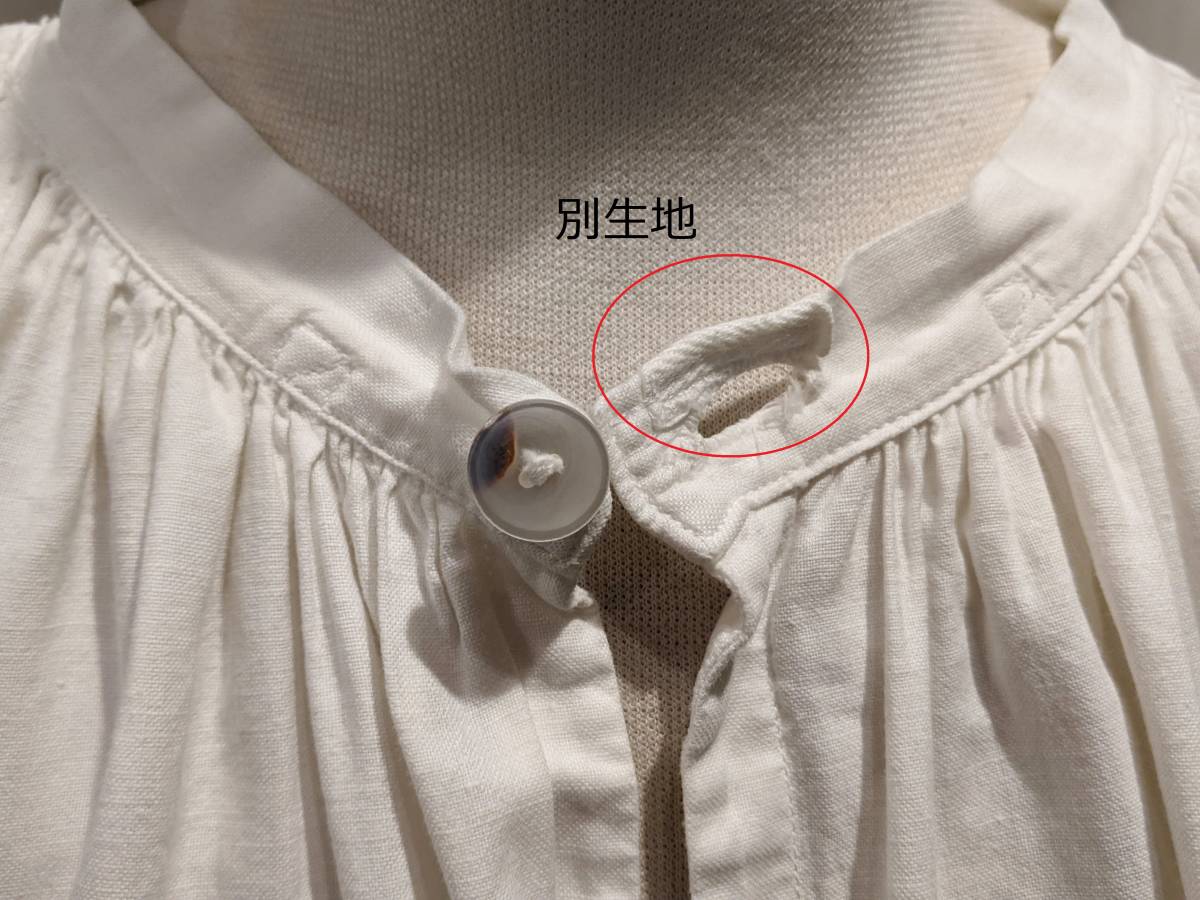 ボタンホールと首後ろに別生地をあてがったリペアあり