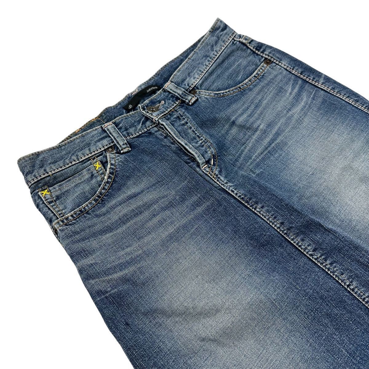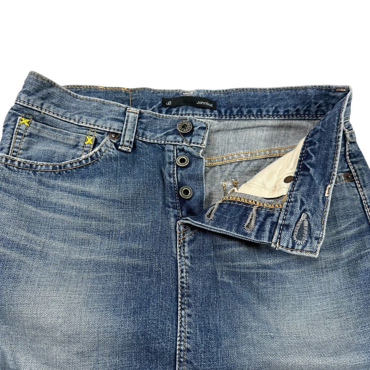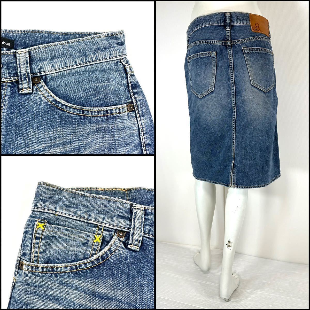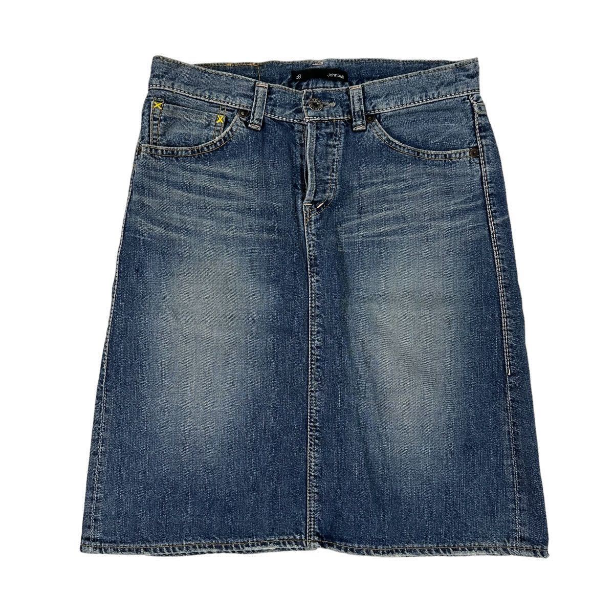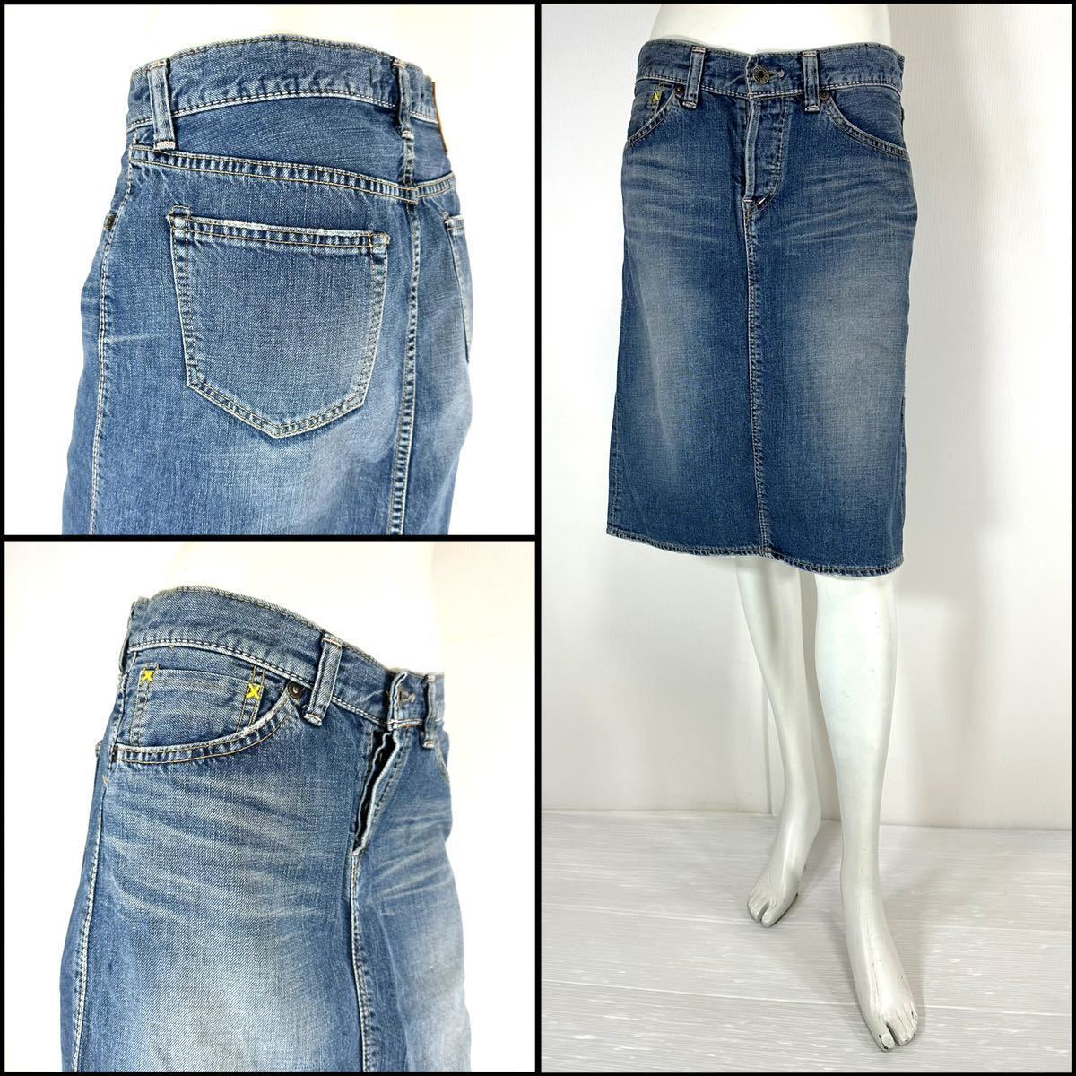 厚さ硬さ共に標準 膝丈のデニムスカートになります。