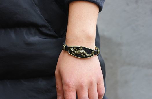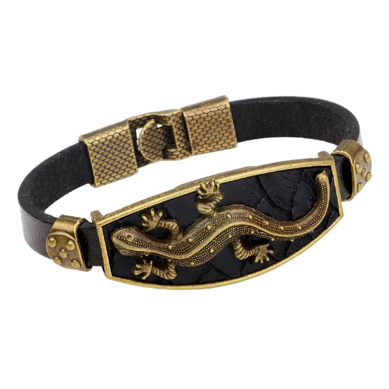 商品名 | [ トカゲ とかげ ブレスレット真っ黒ベルト ]合 皮 イモリ動物ヤモリ革ゴールド爬虫類 |