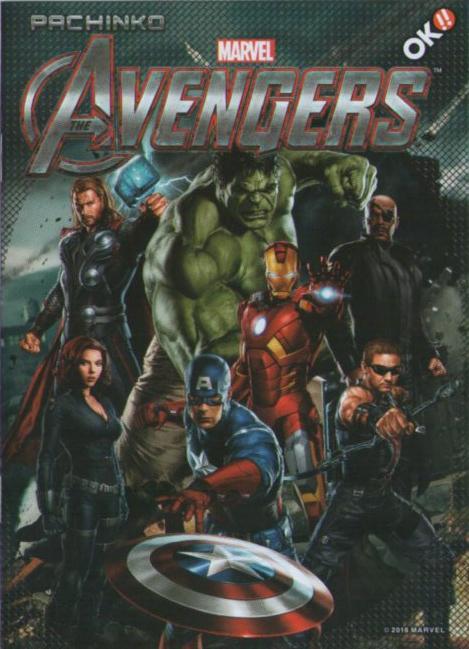 オッケー(OK!!)の2016年導入のパチンコ台「CRぱちんこアベンジャーズ(CR PACHINKO AVENGERS)」の小冊子です。