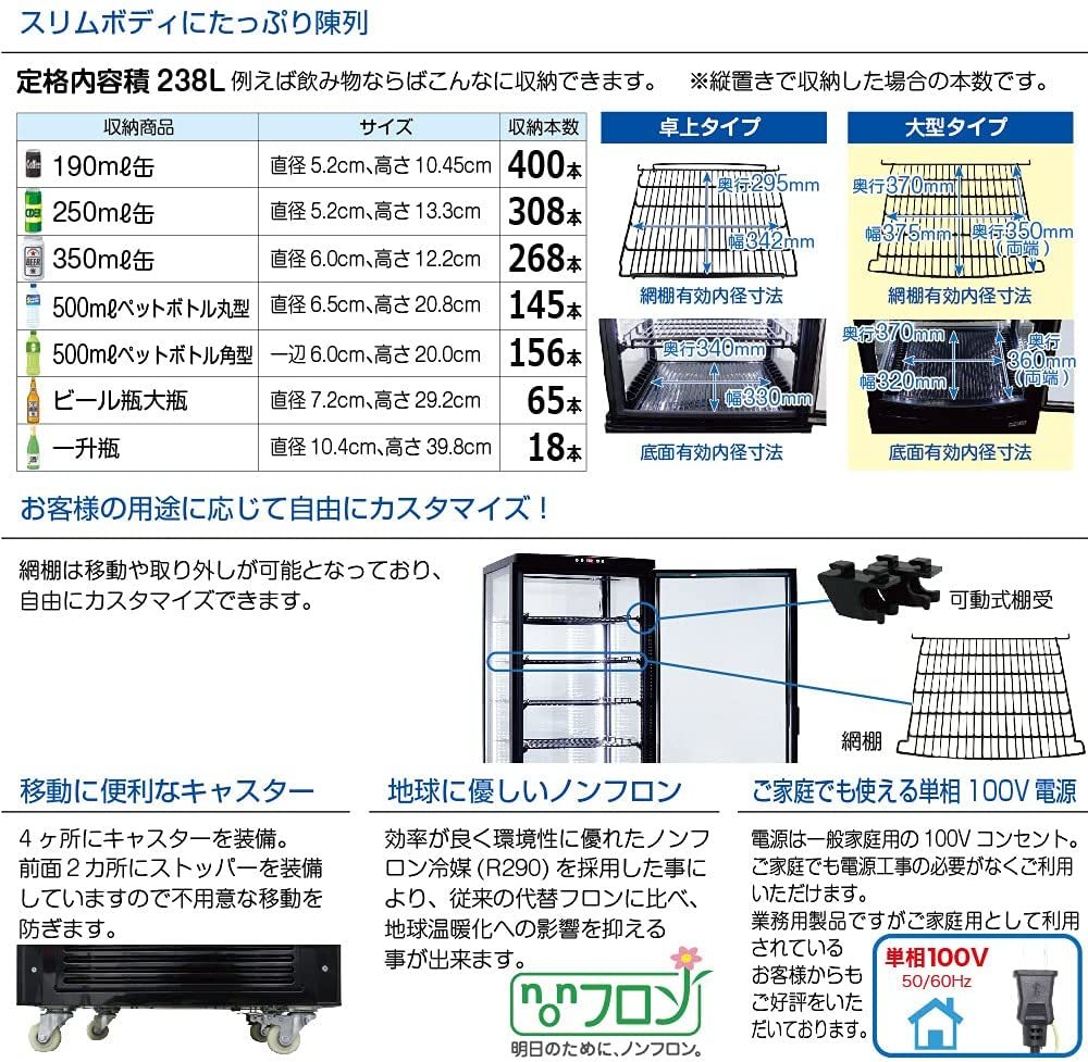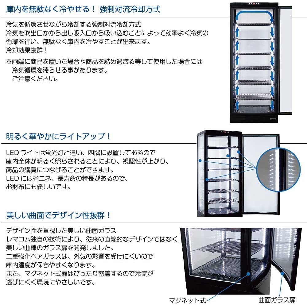 レマコム 4面ガラス 冷蔵ショーケース 大型 238L ブラック R4G-238SLB LED 業務用 冷蔵庫 タテ型