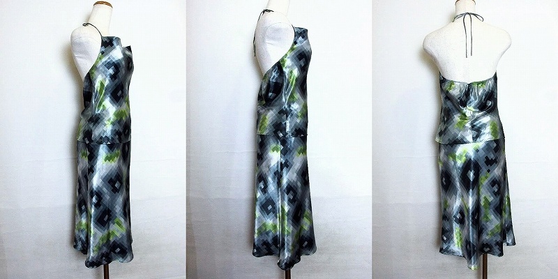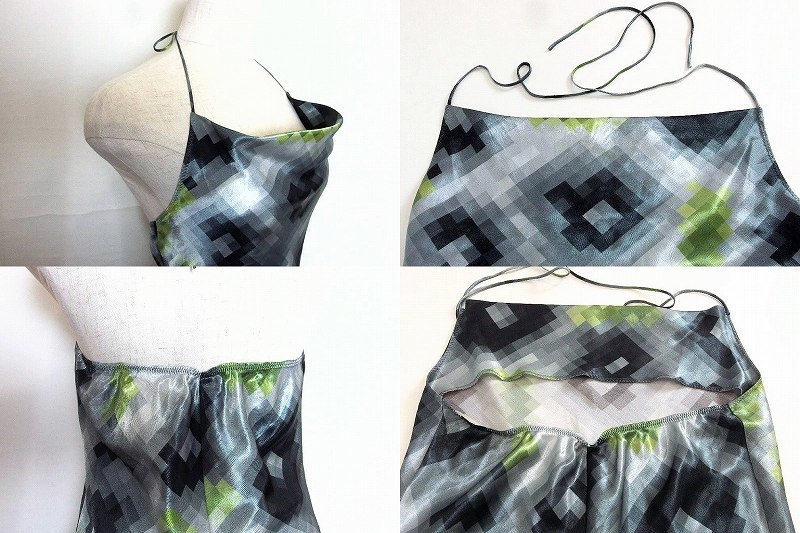 | サイズ ( cm ) | サイズ表記 : 38/36 チューブトップ ・ 身幅(平置)34 ・ 着丈(後ろ身頃)27 ・ 紐長さ54 スカート ・ ウエスト(平置)34 ・ 着丈63 |