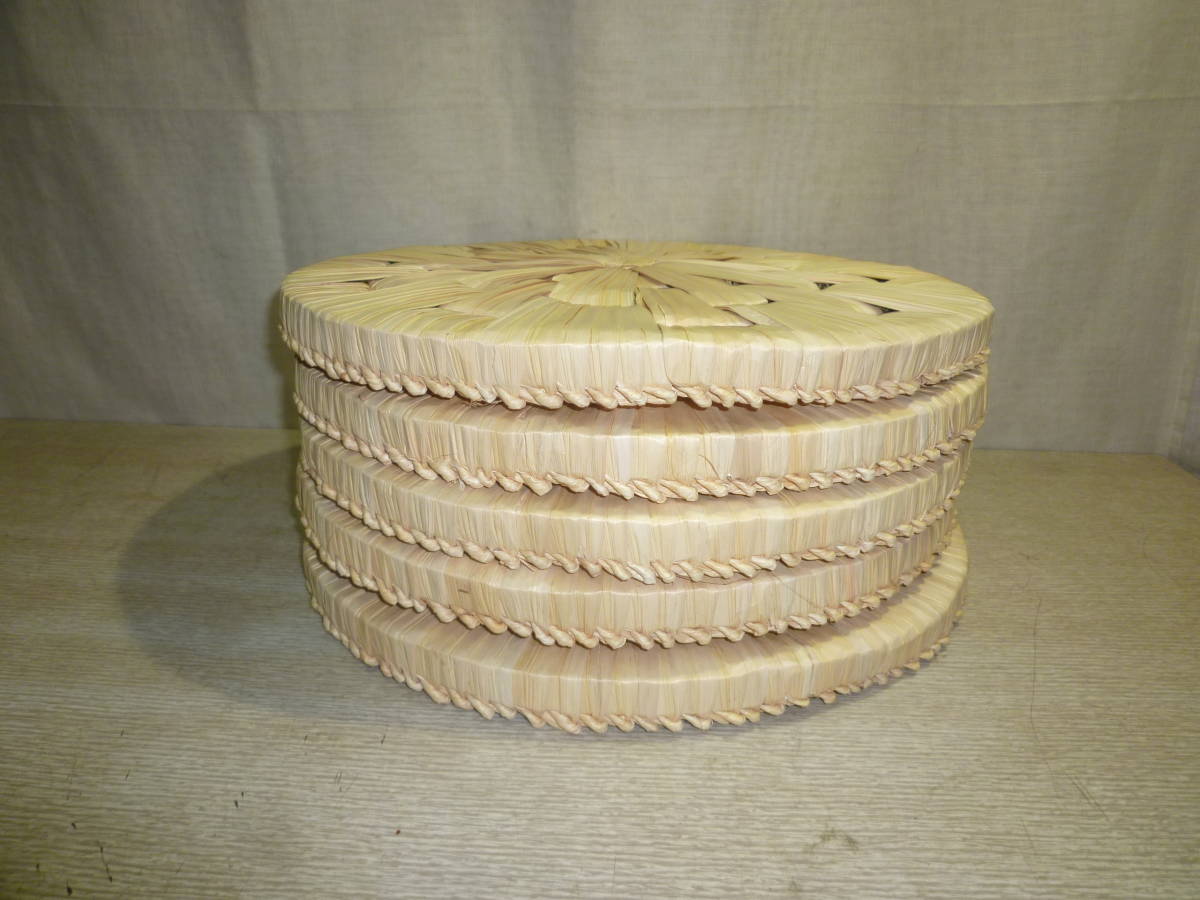 「新品・露地道具」菅製の円座です。五枚です。径約34.5cm 厚み約2.5cm 箱無。 どうぞ宜しく。