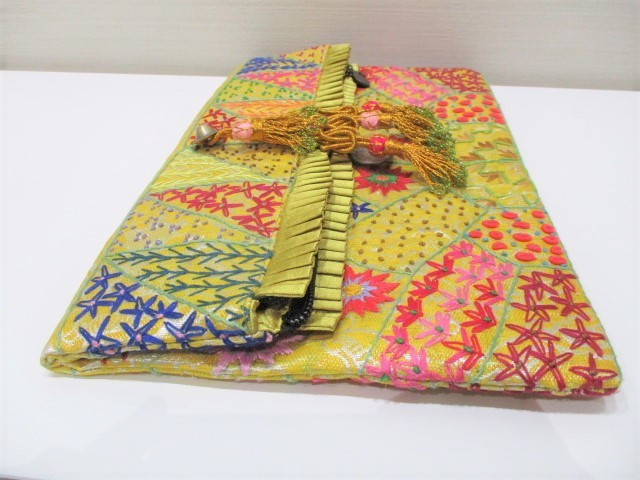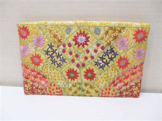 総刺繍クラッチ セカンドバッグ ビーズ ハンドメイド 送料無料
