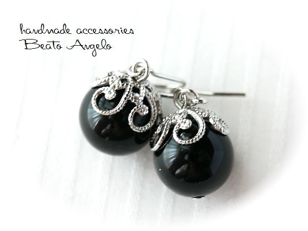 天然石ブラックオニキスの一粒ピアス(p-088)S