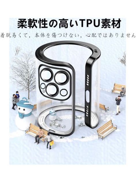 iPhone 14 Pro ケース クリア iPhone14Pro カバー 透明 TPU ソフト 薄型 耐衝撃【指紋防止 落下防止 黄変防止 安心保護 軽量 Qi急速充電対応】黑縁 背面クリア メッキ加工 専用スマホケース アイフォンケース(ブラック)