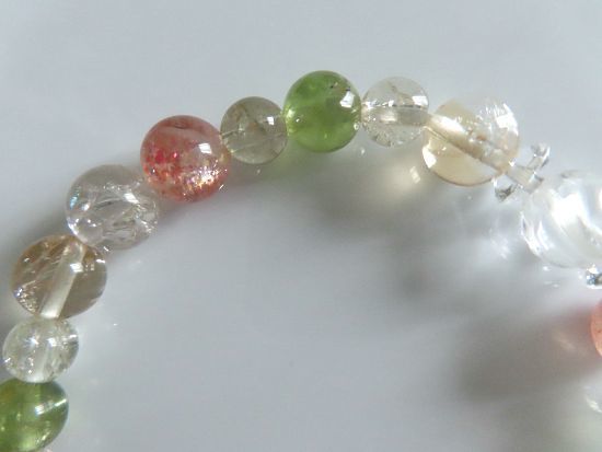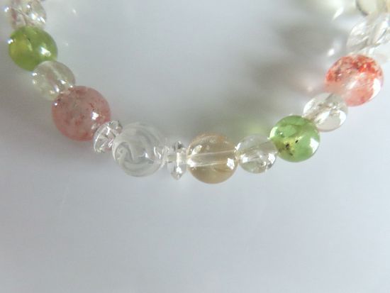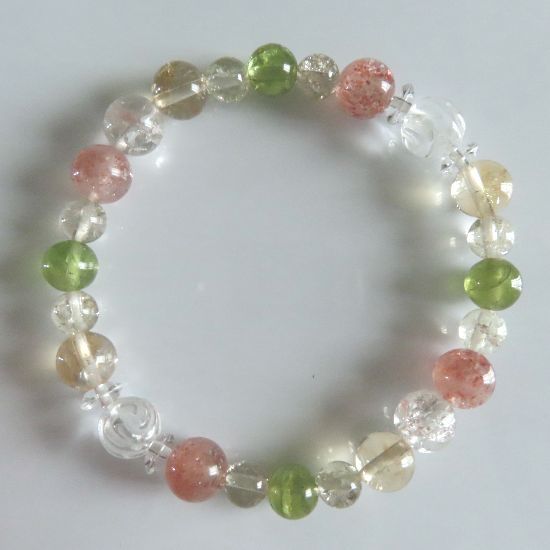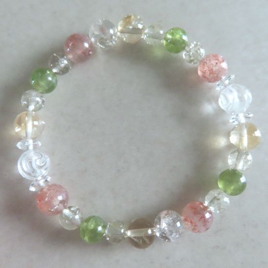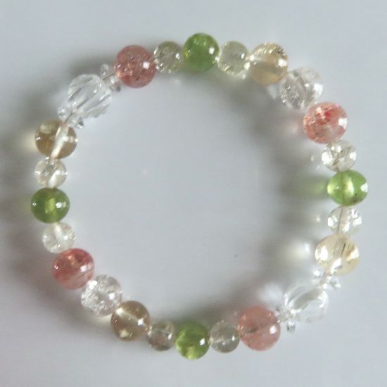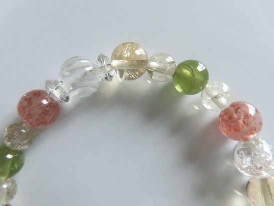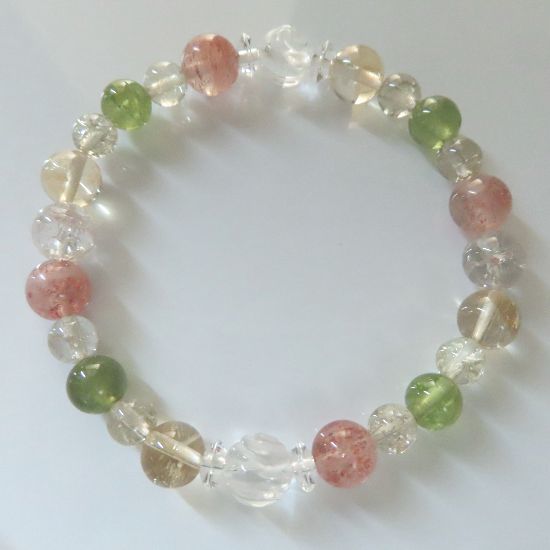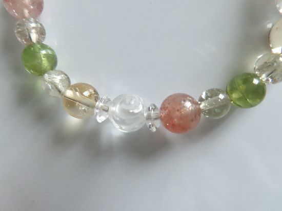 | サンストーン、シトリン、ペリドット、スモーキークォーツ、水晶バラ彫りのブレスレット | |||