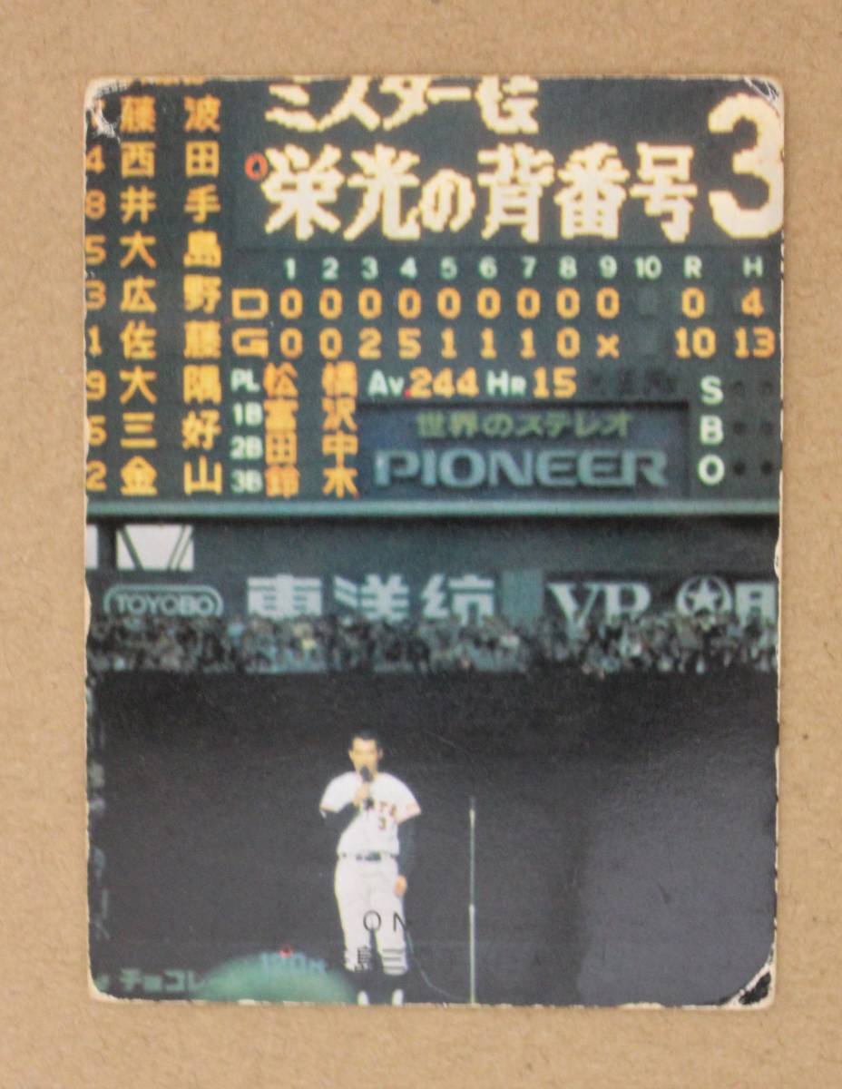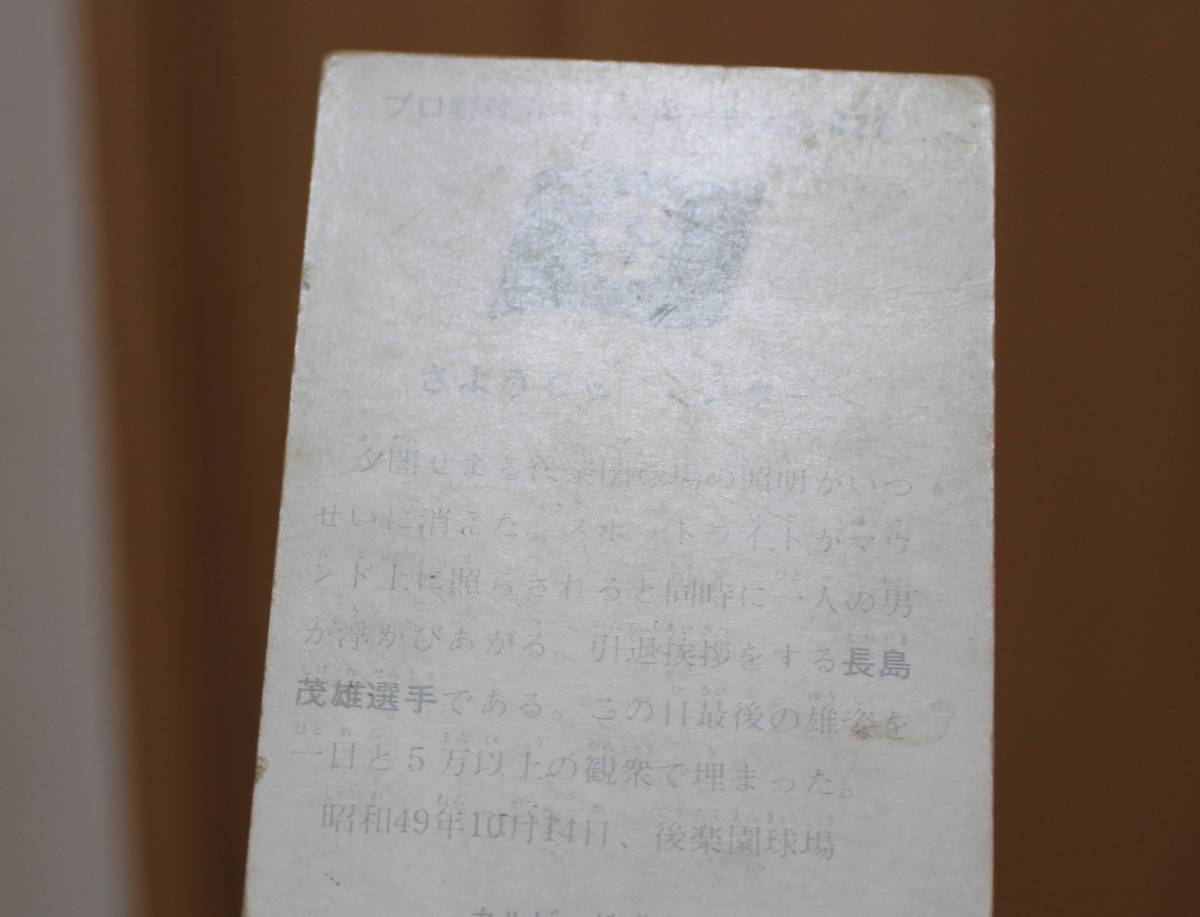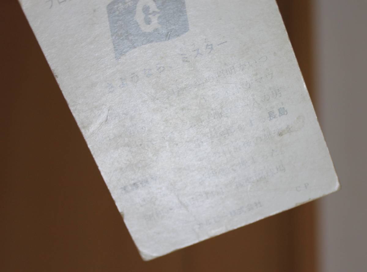 1974年度版 カルビー プロ野球カード・ONシリーズ No.421「さようなら、ミスター」長島茂雄三塁手 (巨人)です。