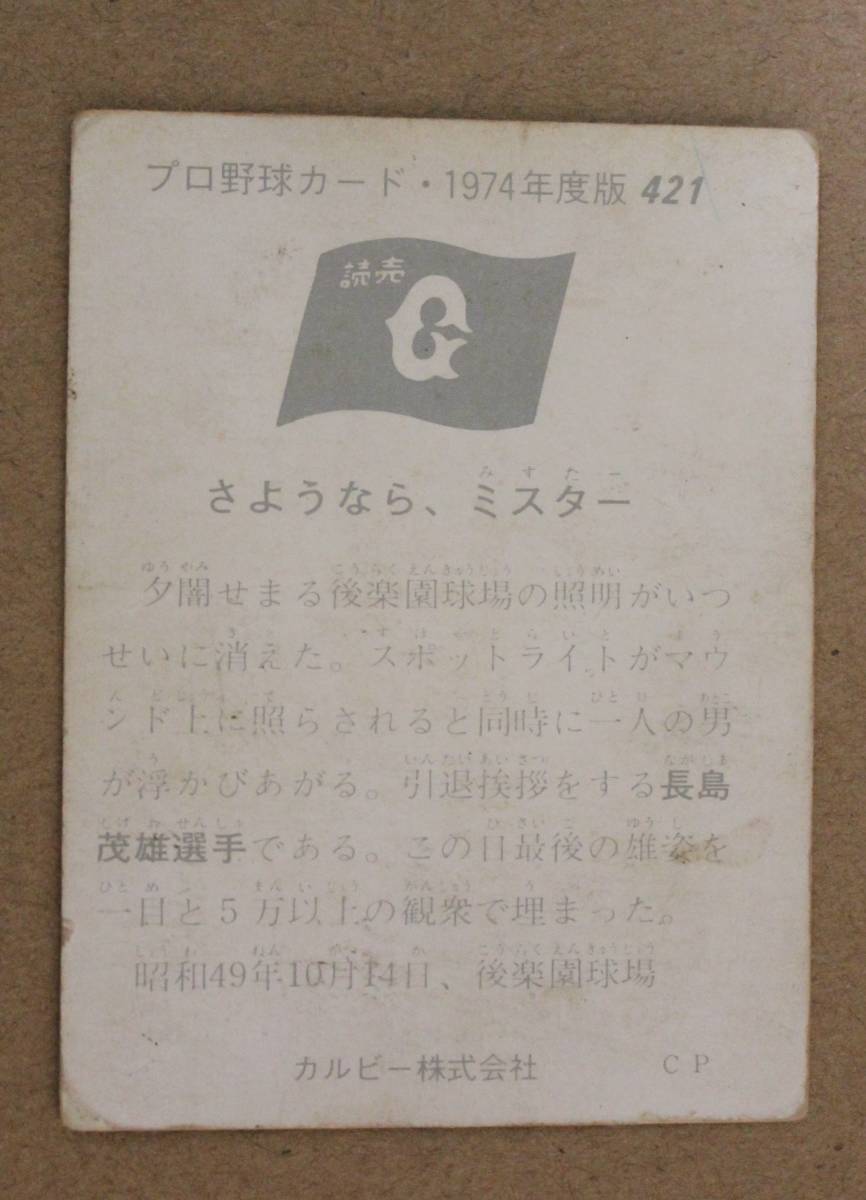 1974年度版 カルビー プロ野球カード・ONシリーズ No.421「さようなら、ミスター」長島茂雄三塁手 (巨人)