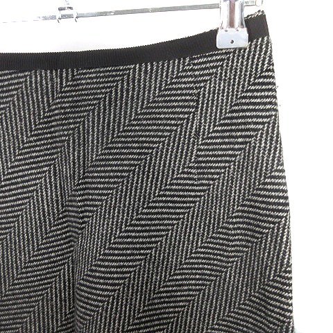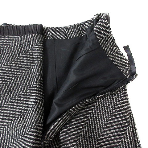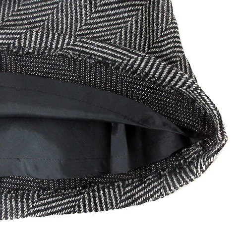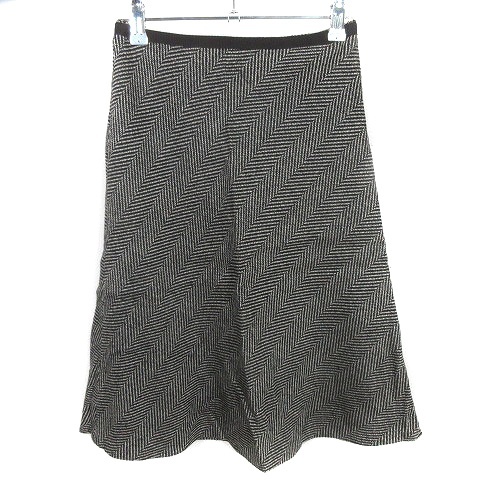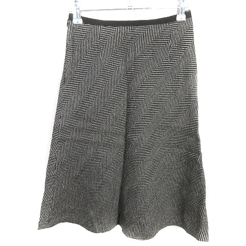 アンタイトル スカート フレア ひざ丈 ヘリンボーン サイドファスナー 薄手 ウール 総柄 1 黒 白 ブラック ホワイト ボトムス レディース