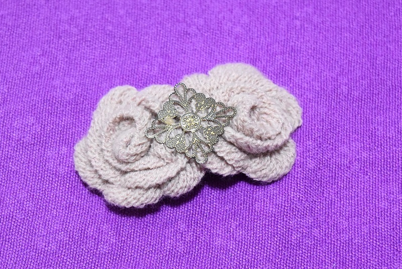 秋~冬に ニット髪飾り パッチン留め ヘアアクセサリー ヘアクリップ クスミピンク