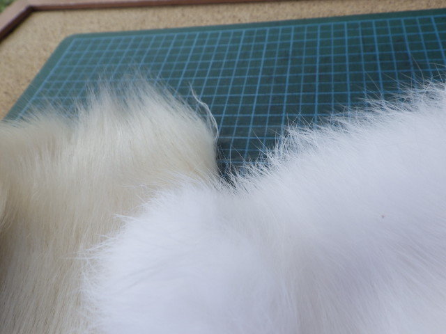 画像④は参考画像 左が今回使用と同等品の光沢強めのラム。右は一般的なラビット。共にナチュラルホワイト。