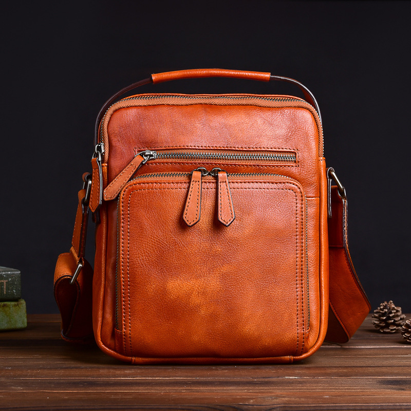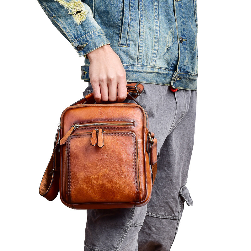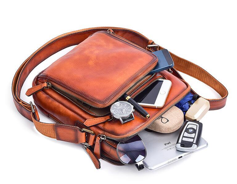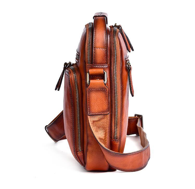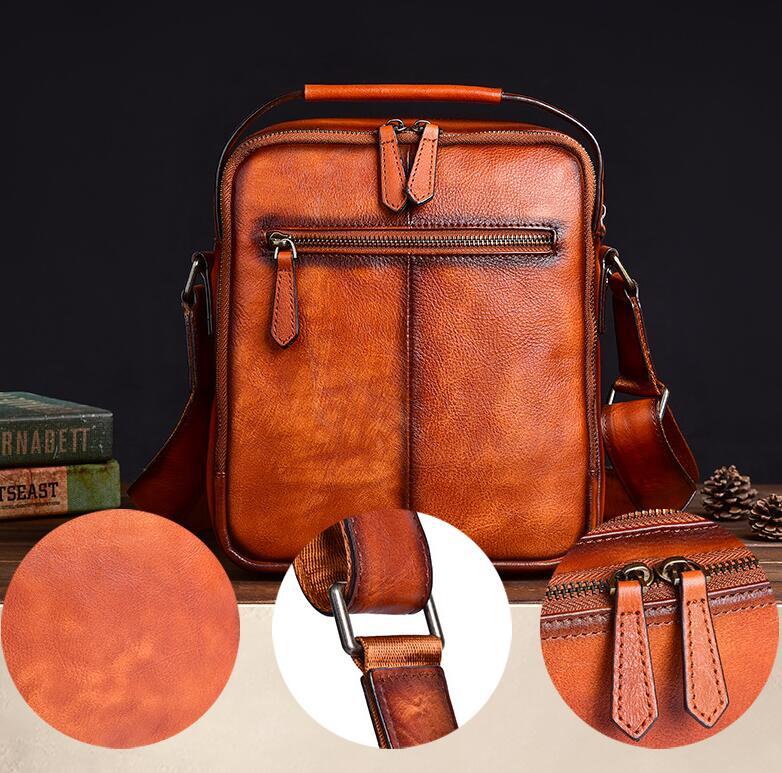 新品 本革 ショルダーバッグ メンズ アンティーク 斜め掛け鞄 メッセンジャーバッグ ヌメ革 牛革 レザー iPad収納 ブラウン
