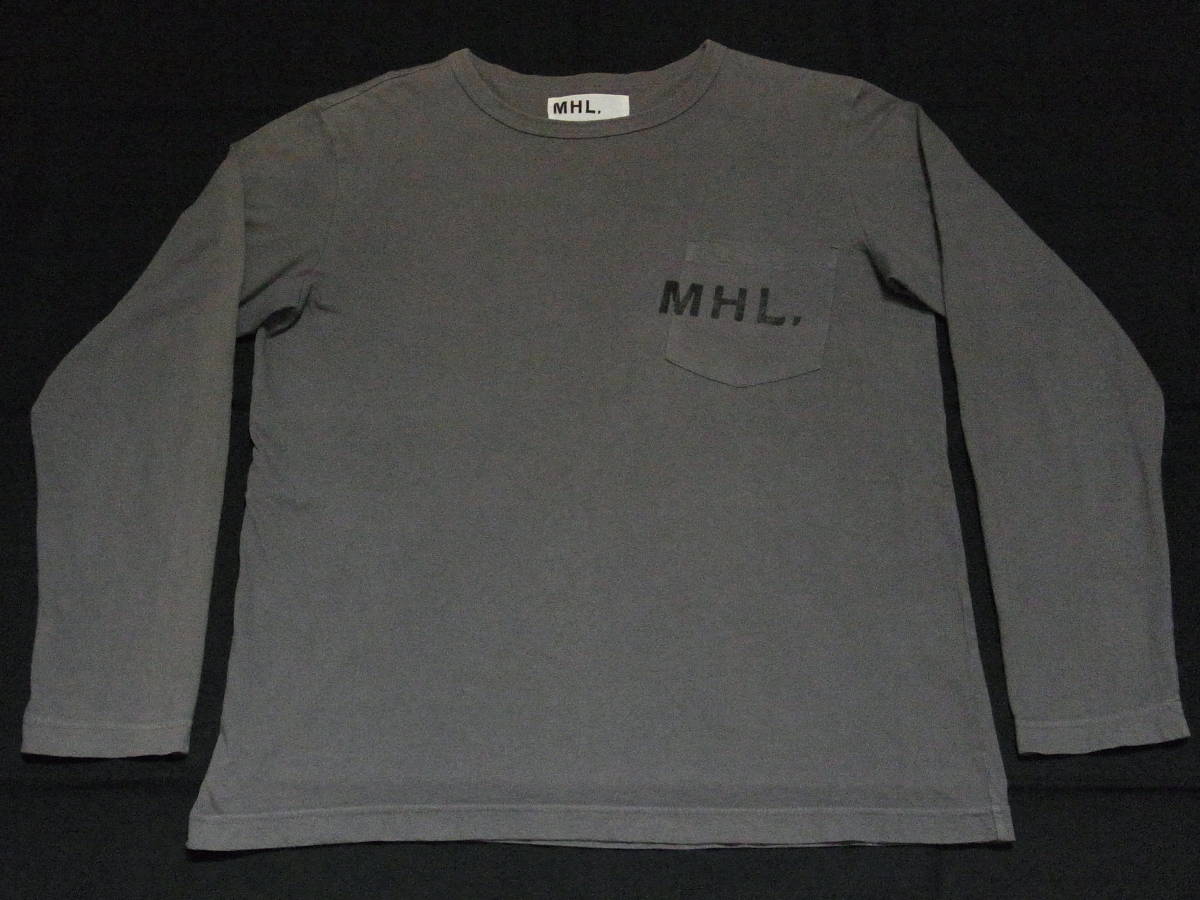 廃盤 希少 オールド MARGARET HOWEL ロゴ 長袖 Tシャツ グレー S レア ビンテージ マーガレットハウエル MHL. カットソー ボートネック 黒