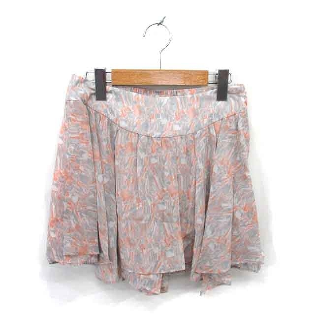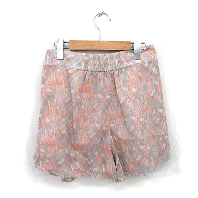未使用品 インデックス INDEX タグ付き キュロット ショート パンツ フレア 総柄 薄手 M グレー オレンジ /TT3 レディース