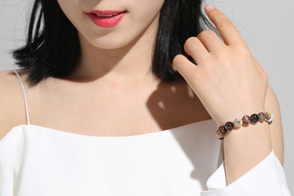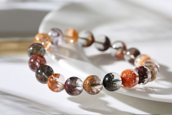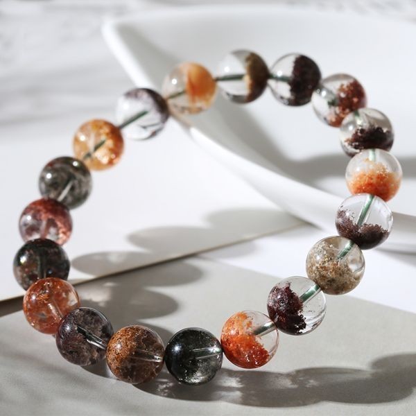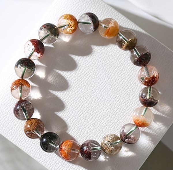 [EasternStar] 海外発送 ミックス ファントムクォーツ コルヌコピア 幽霊水晶 特選品 玉サイズ9mm 腕回り約16cm