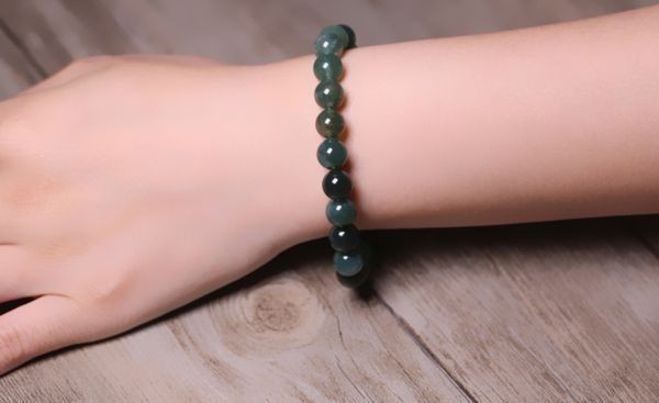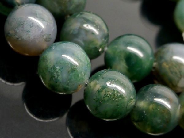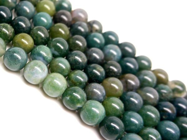 [EasternStar] 海外発送 モスアゲット Moss Agate 苔瑪瑙 水草瑪瑙 メノウ 玉サイズ14mm 1連売り 長さ約40cm