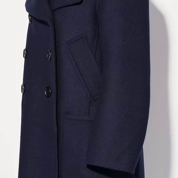 ピーコートらしい、重厚感のある1着。立体的ながら柔らかさのあるシルエットもポイント。