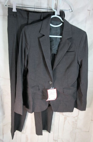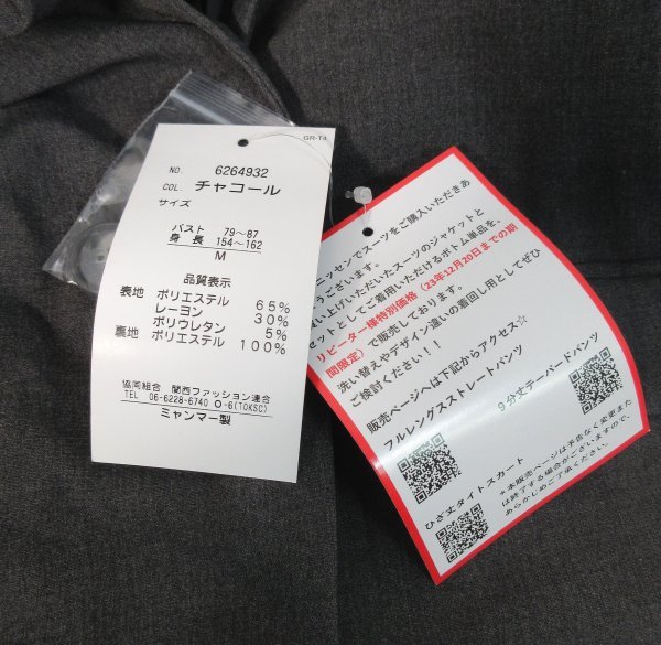 16 00975 ☆ パンツ スーツ 上下 セット (テーラードジャケット ストレートパンツ) レディース チャコール M【アウトレット品】