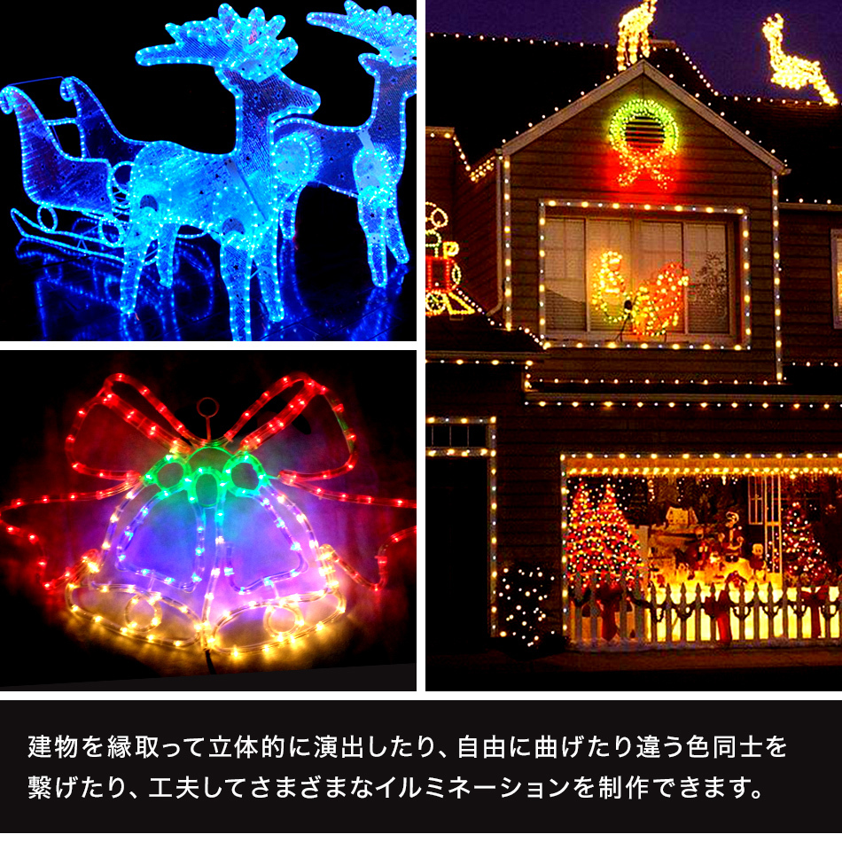 | 高輝度LEDロープライトは従来のロープライトと驚くほどに輝きが違い、 鮮やかな発光色、とても綺麗な輝きです。 店舗の飾り付けやイベント、パーティー、ハロウィンやクリスマスに。 生活防水仕様なので屋外での使用ももちろん可能!! 1m単位でカット可能!! フェンスや屋根にそって飾ったり、動物、ツリー、星、文字の形を作ったり自由自在に使えます。!! 別売りの電源コントローラーで8種類の発光パターンが楽しめます。 【仕様】 商品名:LEDチューブライト(10mm/2芯) 色:グリーン 長さ:50m 消費電力:約1.58W/m 定格電圧:100V~110V 防水レベル:IP65 LED数:約30灯/m 表面素材:紫外線に強い透明PVC使用 導線:ニッケルメッキ銅線使用 ※電源コントローラーは付属しておりません。 ※こちらの商品だけでは光りませんのでご注意下さい。 ※必要数量に応じ、別売の電源コントローラーをお求め下さい。 ※約1m毎に、カットできる箇所【ハサミマーク】があります。 |
