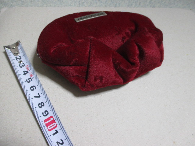 シックなワインカラーのベルベット素材で作られたミニポーチです。