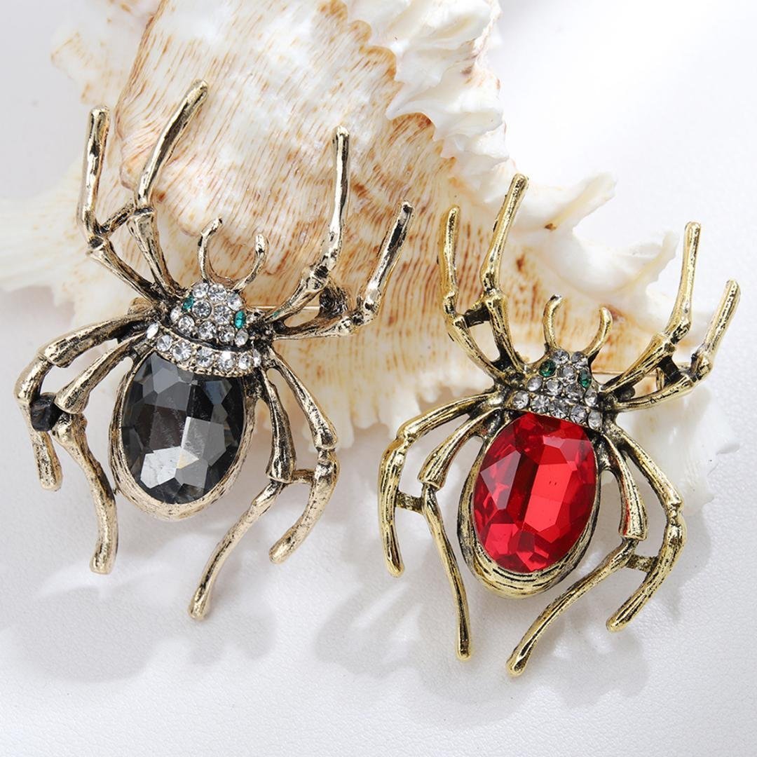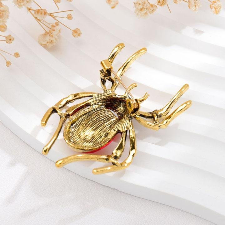 【動物】 レトロ 昆虫 蜘蛛 クモ 2WAY ブローチ/レッド