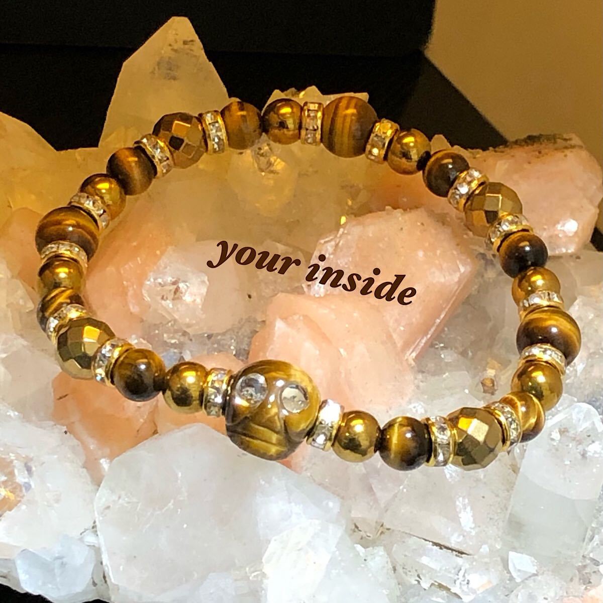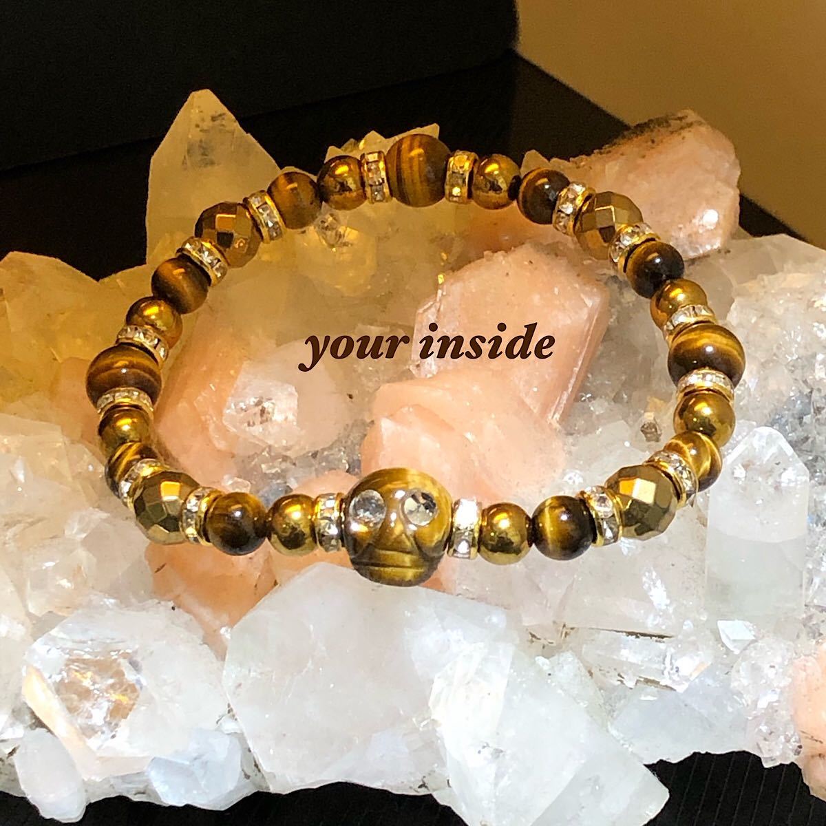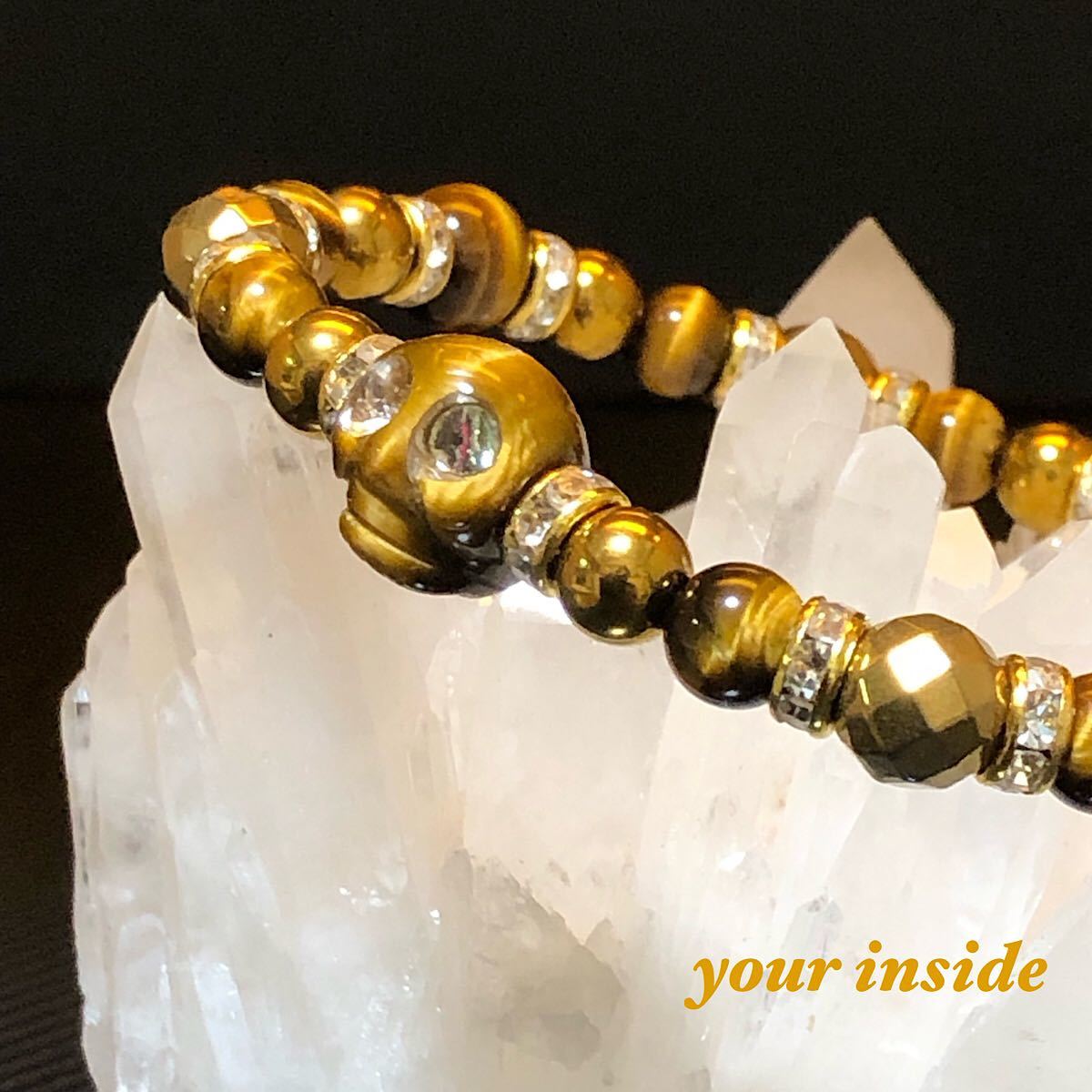 ドクロタイガーアイ 約11×11×11㎜ スカル型