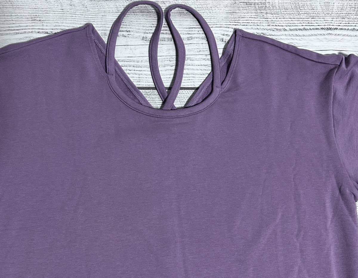 DANSKIN (ダンスキン) - ラックスフィット バックストラップトップ ダスキーオーキッド 半袖 Tシャツ トップス (タグ付き 新品 未使用品)