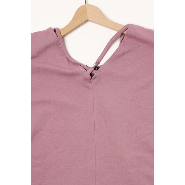 柔らかくソフトな風合いで、身体を優しく包み込んでくれるような着心地のバックストラップデザインのトップスです。