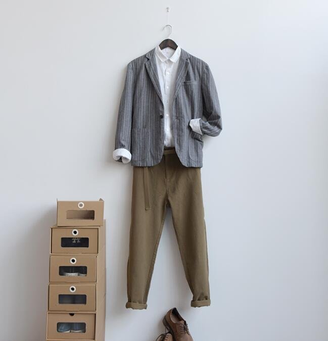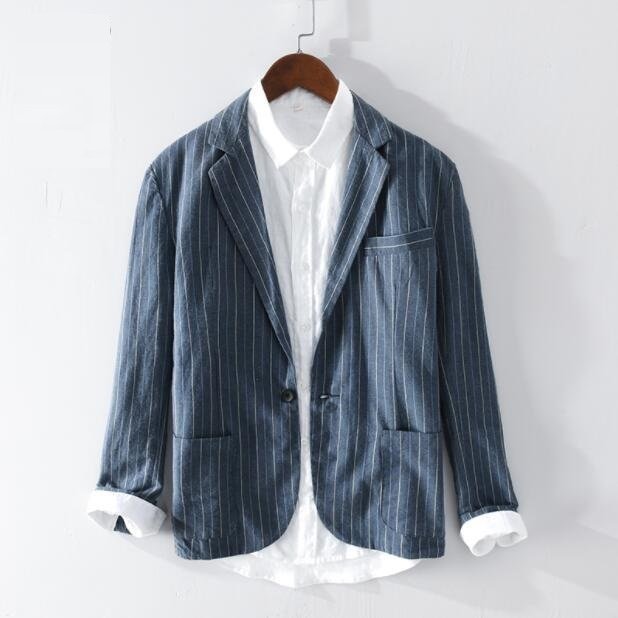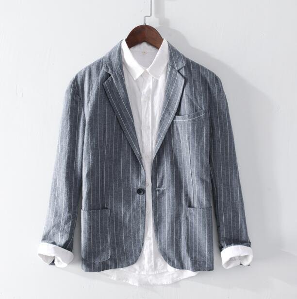 リネン テーラードジャケット メンズ ブレザー ストライプ柄 サマージャケット 春秋物 アウター グレー M~3XL