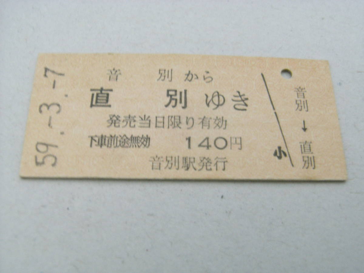 根室本線 音別から直別ゆき 140円 昭和59年3月7日 音別駅発行 ●直別駅廃駅