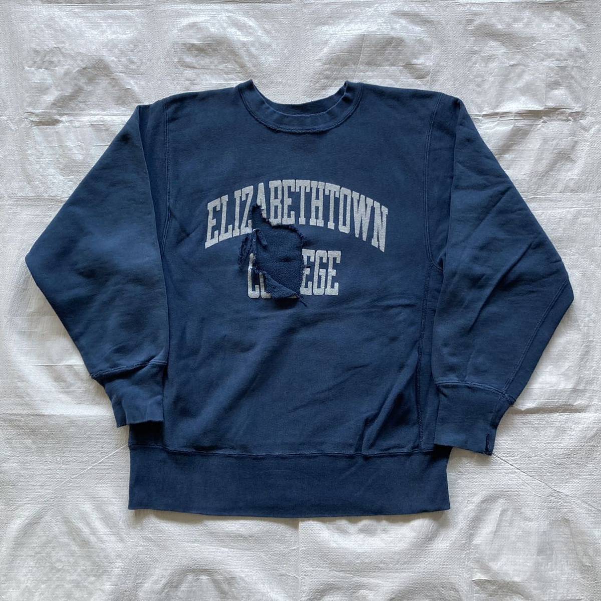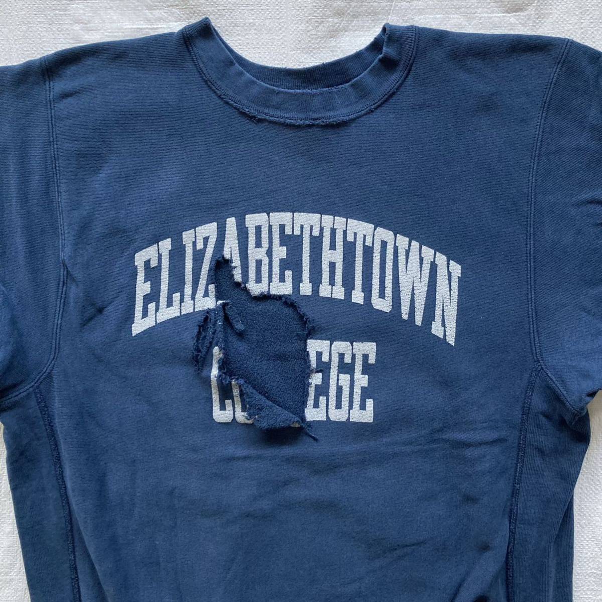 90s Champion チャンピオン USA製 エリザベスタウン大学 リバースウィーブ スウェット トレーナー クラッシュ 襤褸 L