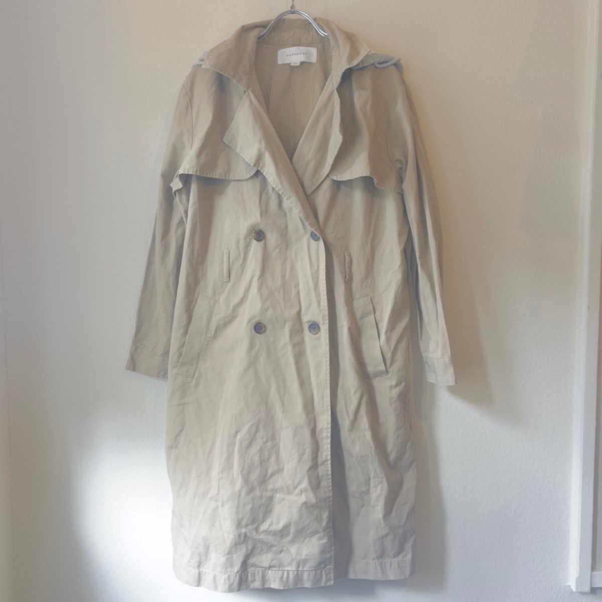 ミドル丈でダブルブレスなので立体的なシルエットになります。