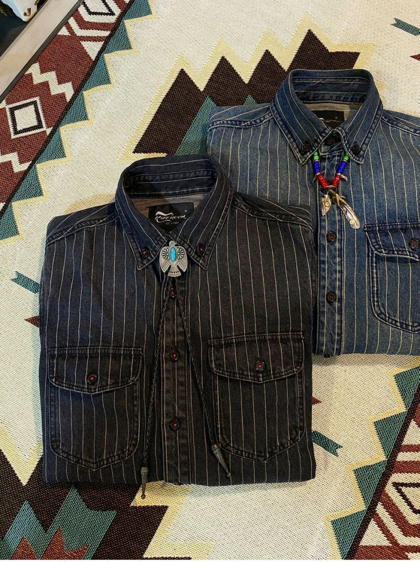 ヴィンテージ 高品質 かっこいい デニムストライプ 長袖   ダンガリーシャツ アメカジ ユーズド加工 S~2XL