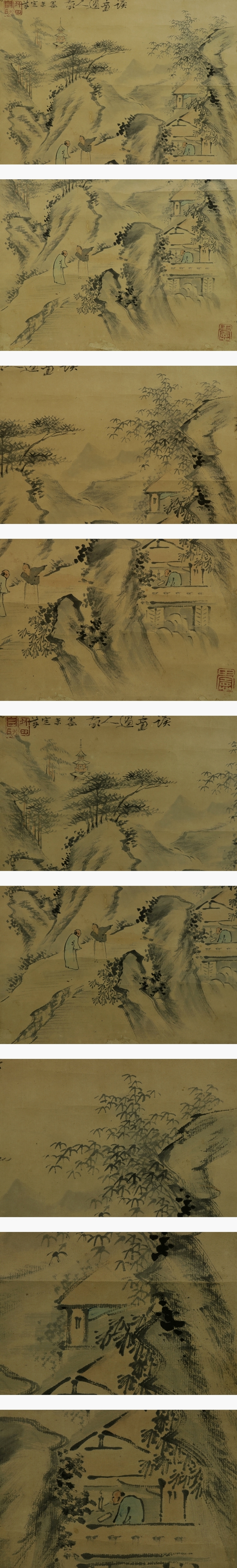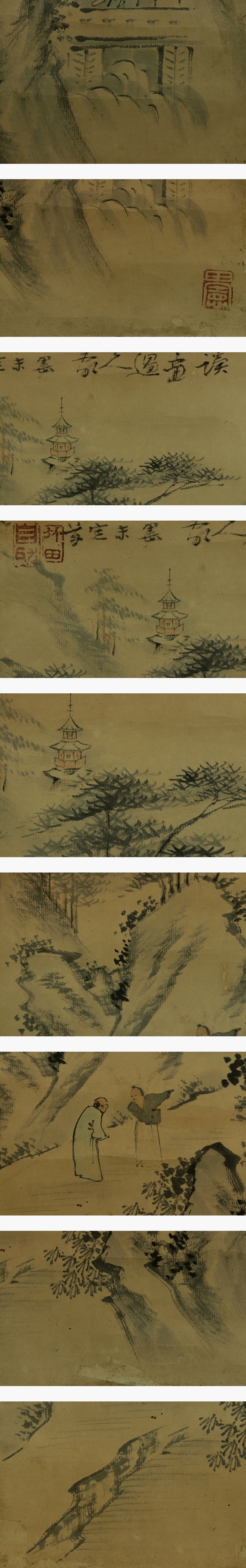 | №2112229【真作】田能村竹田【淡彩山水図】◆紙本◆合箱◆掛軸 | |