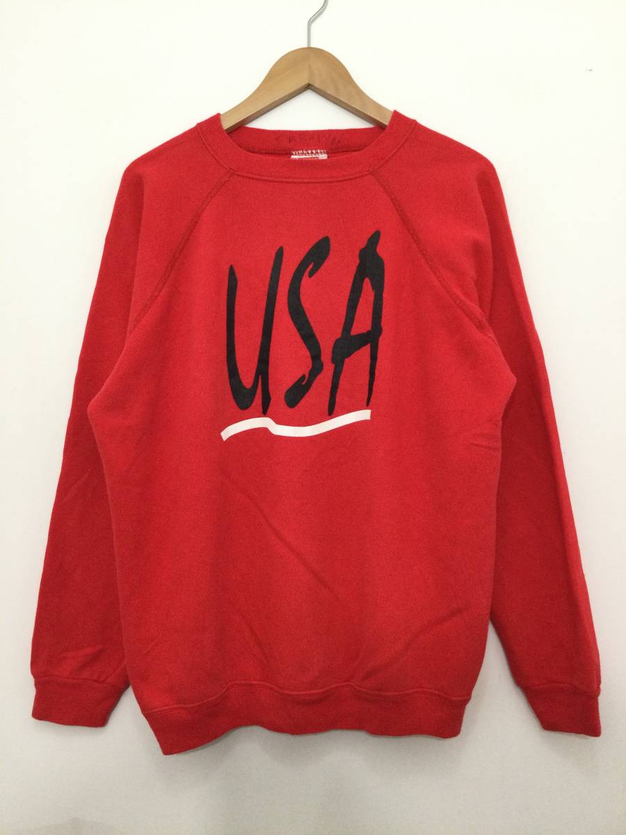 Hanes ヘインズ USA製 プリント ラグランスリーブ スウェット スウェットシャツ VINTAGE メンズL〜 【良品】