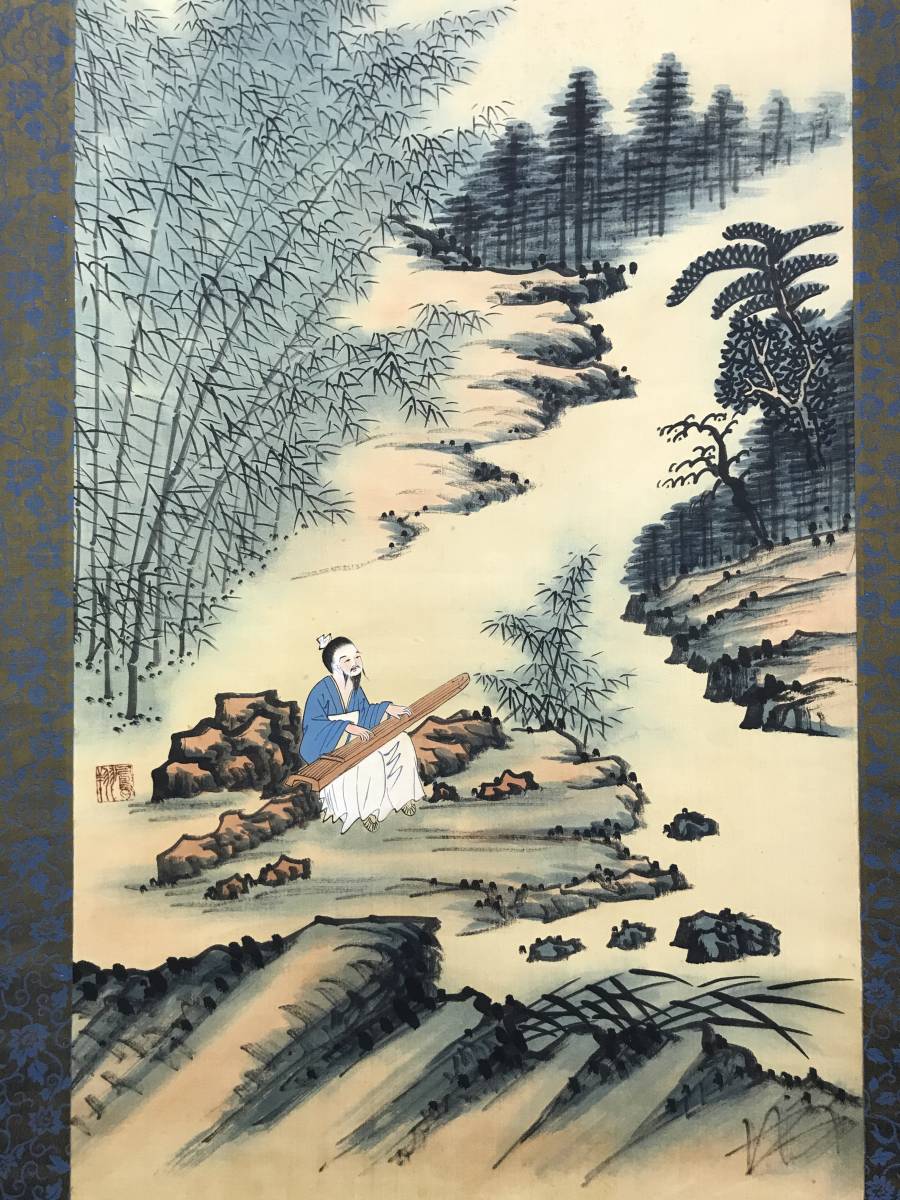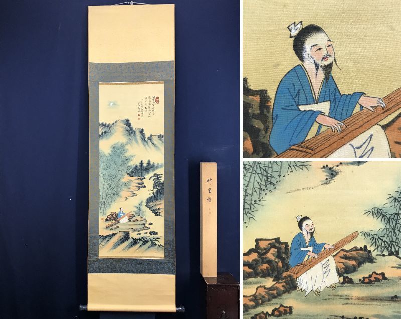 作者不詳/竹山禅琴画賛/山水図//掛軸☆宝船☆AD-867