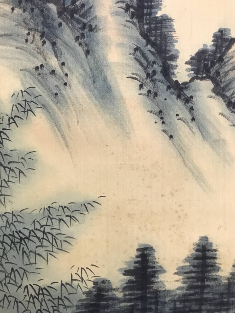 【作品状態】 本紙は絹本肉筆です。本紙は多少のシミあります。表装は天に糊シミあります。