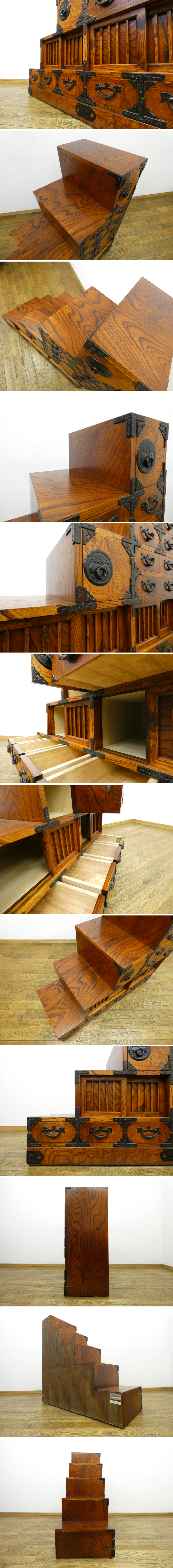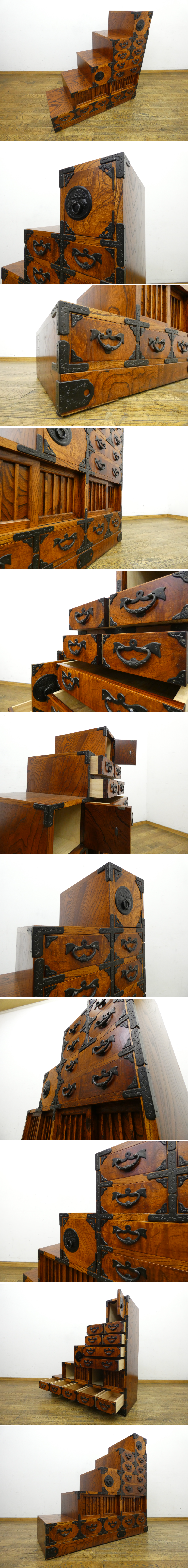 ◆FX86◆展示品◆伝統工芸品◆岩谷堂箪笥◆漆塗◆欅材◆5段◆階段箪笥◆右上がり◆整理箪笥◆時代箪笥◆和箪笥◆チェスト◆間仕切り◆80万