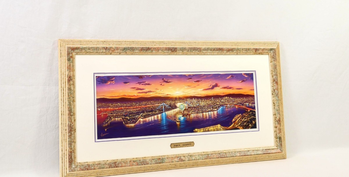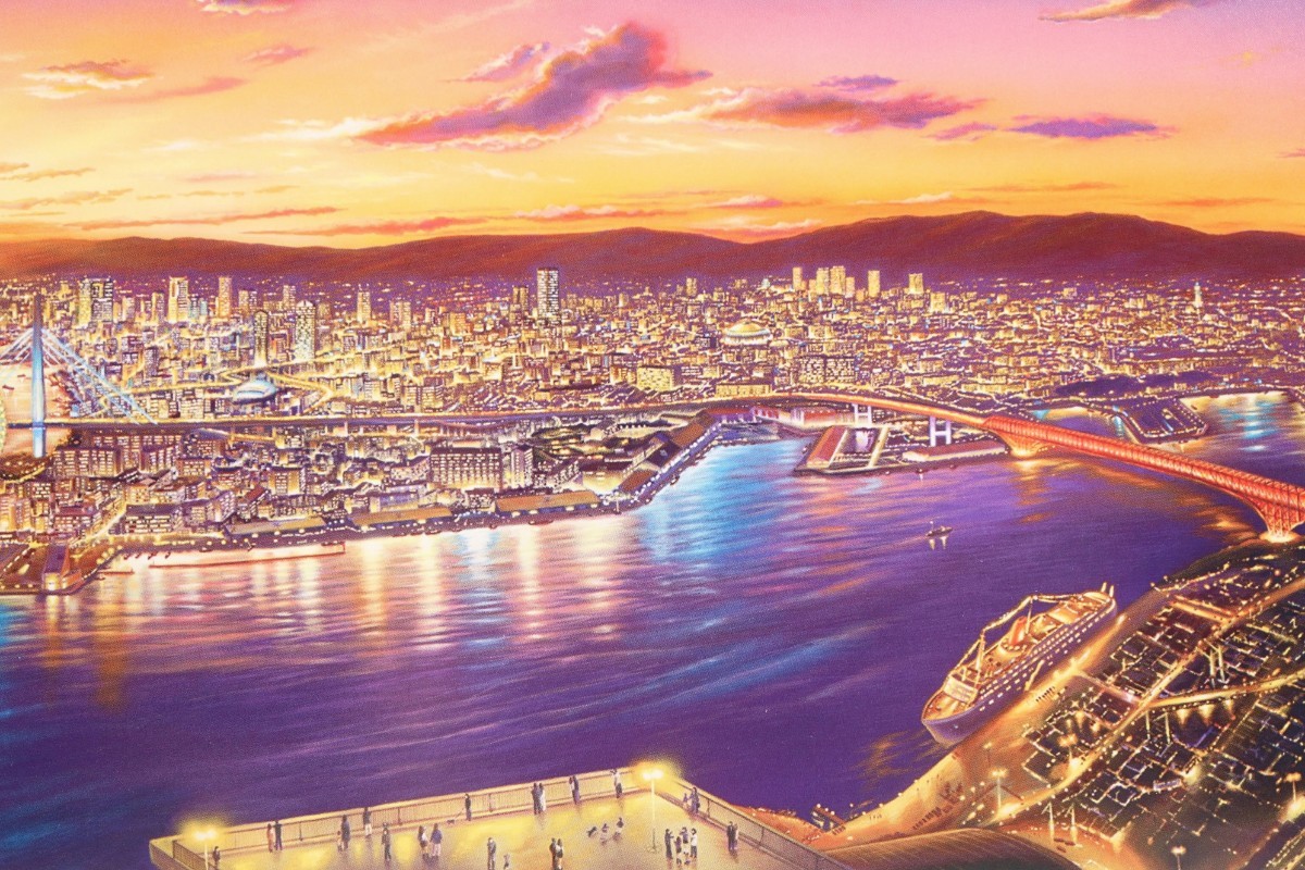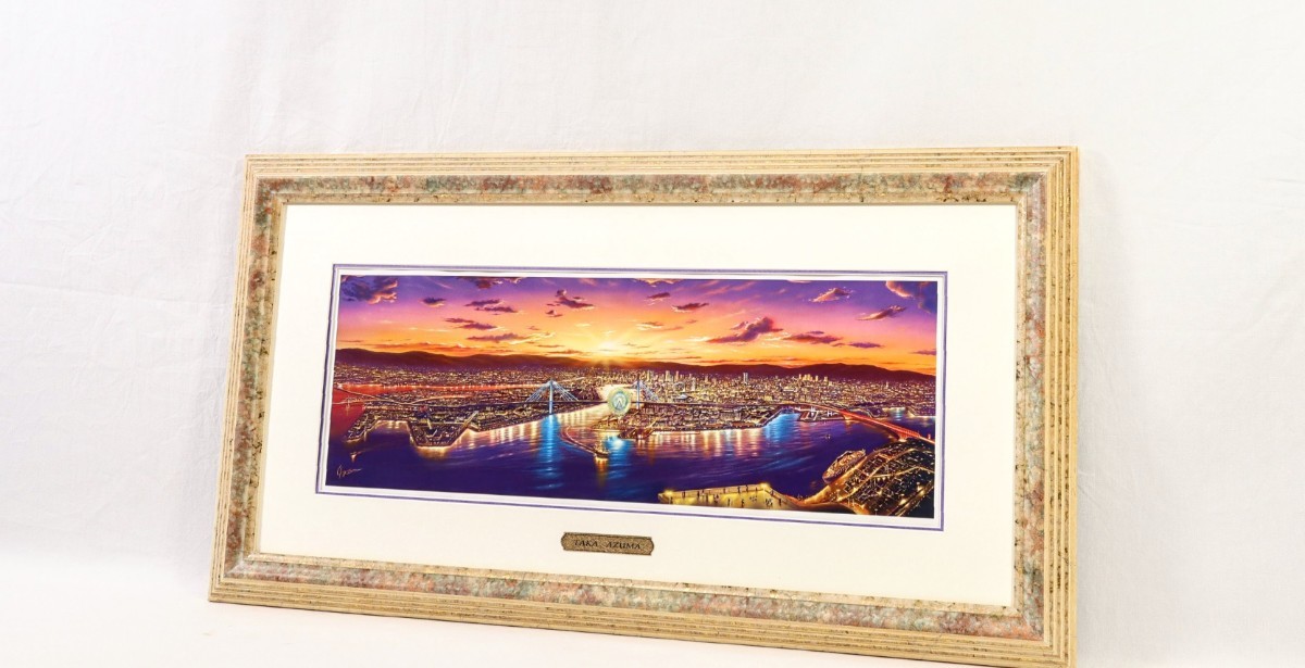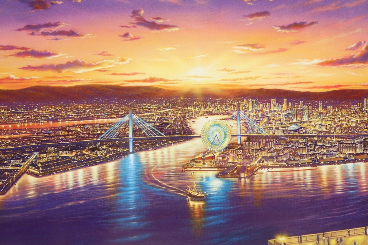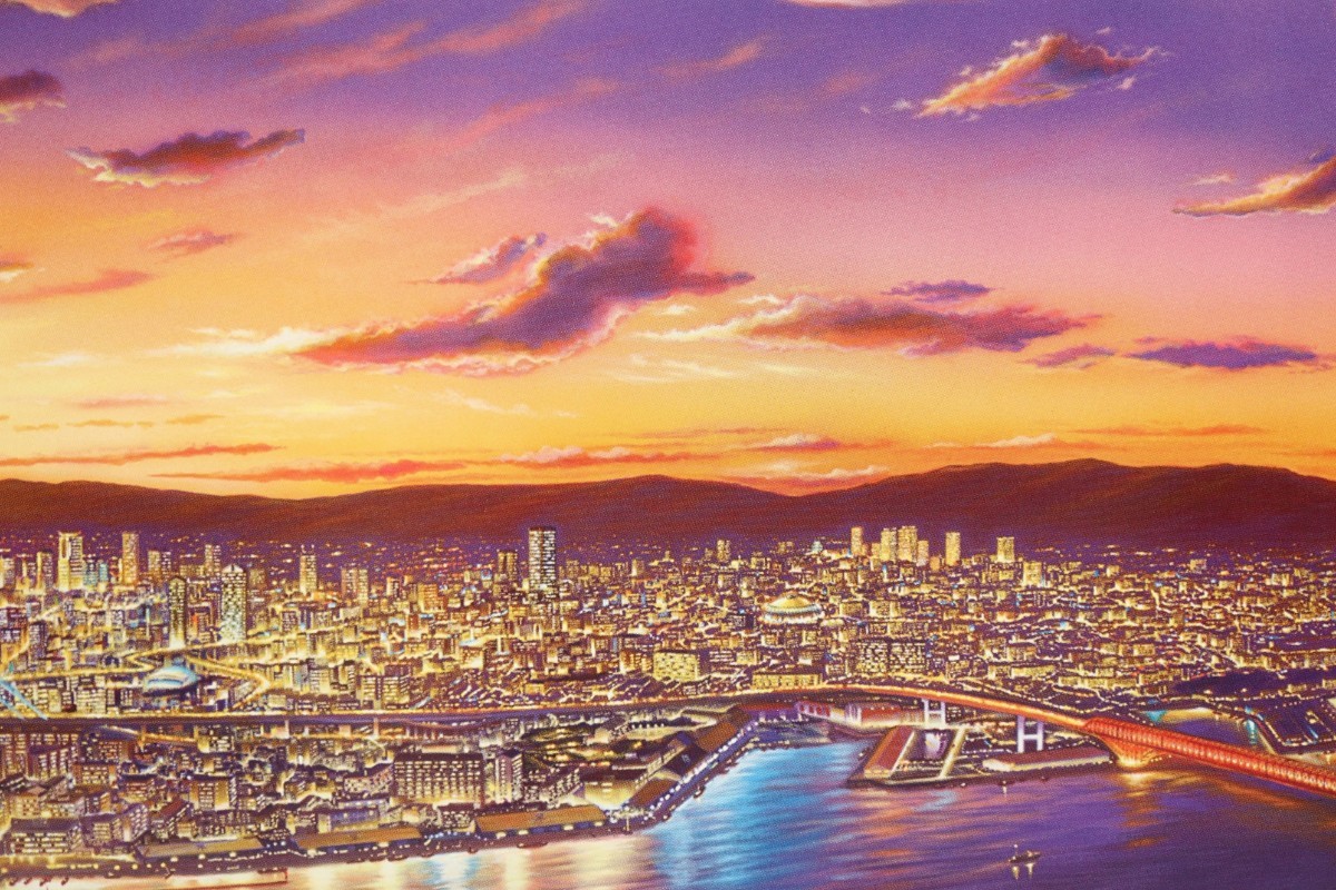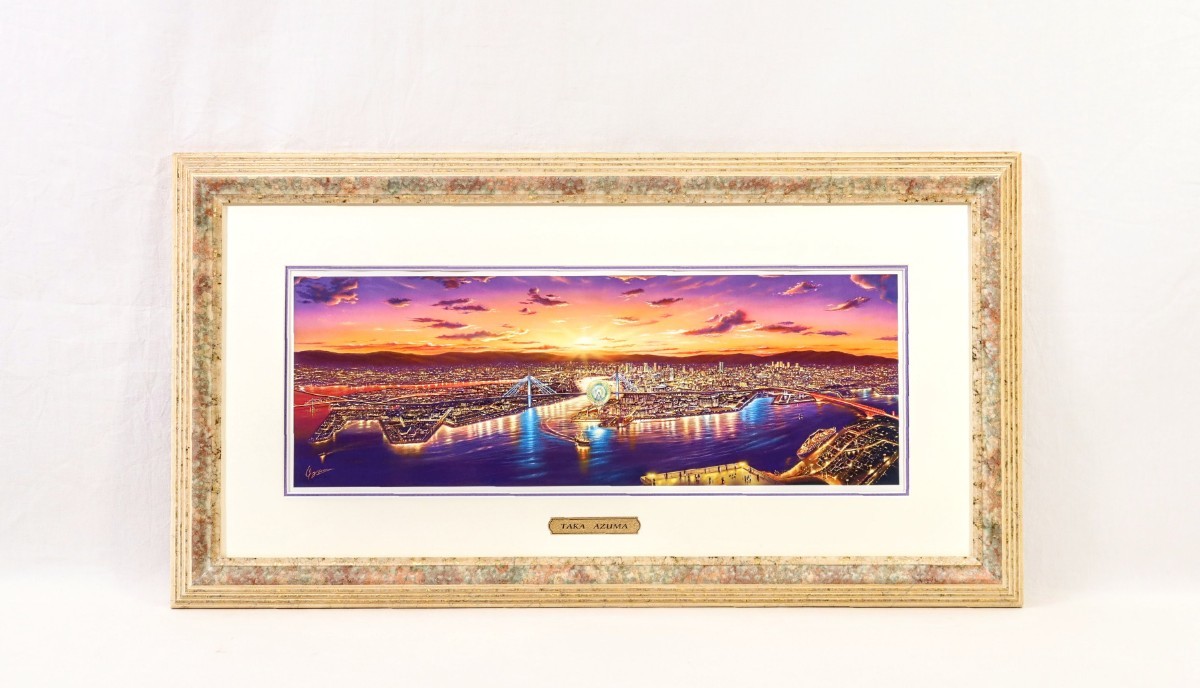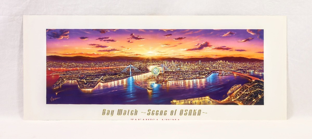 東隆久 オフセット「Bay Watch Scene of OSAKA」画寸 48cm×17cm 大阪、海遊館を中心のベイエリアのサンセットのパノラマ夕景 8282
