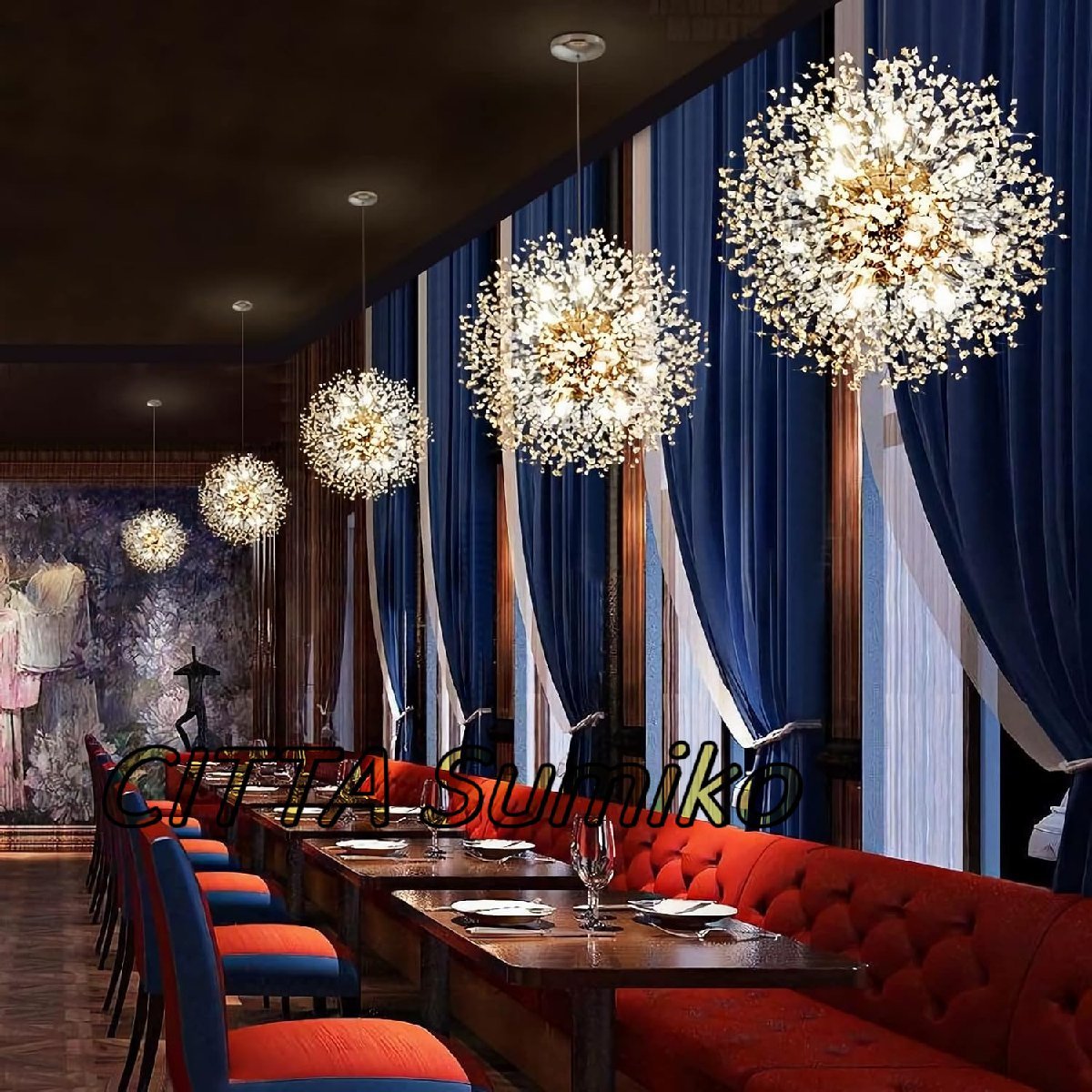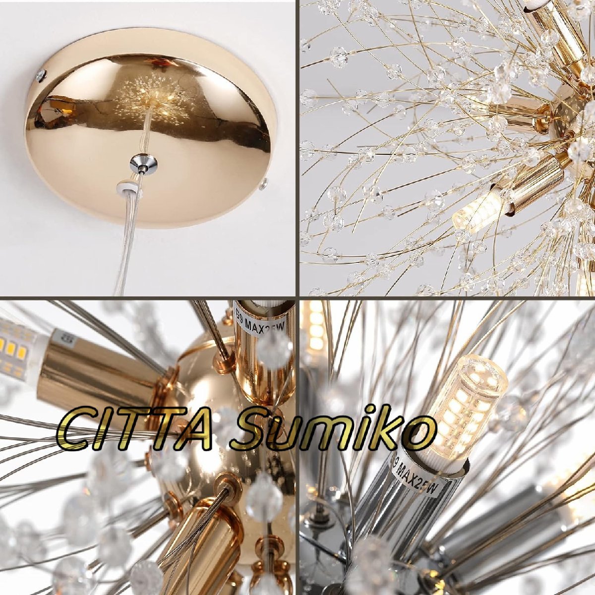 ●材質:金属+水晶 ●サイズ:直径:55CM*高さ100cm ●カラー: 写真通り ●定格電圧:110V ●光源:LEDチップ ●定格消費電力:8W ●適用空間:12-20㎡、
