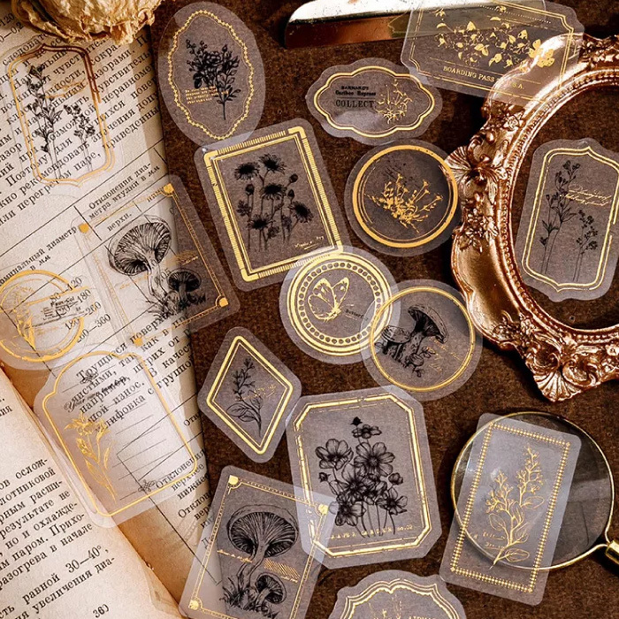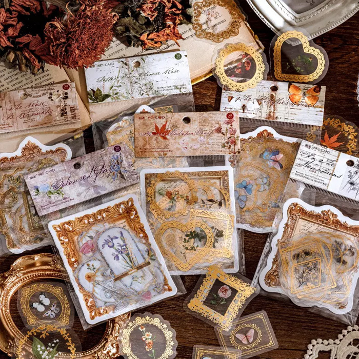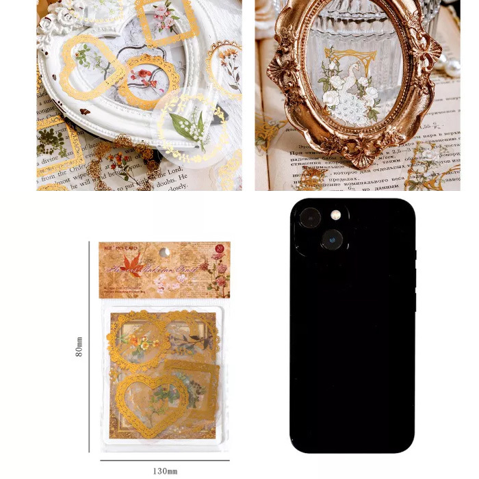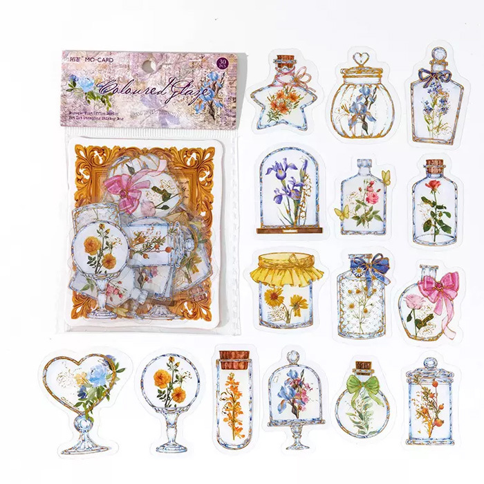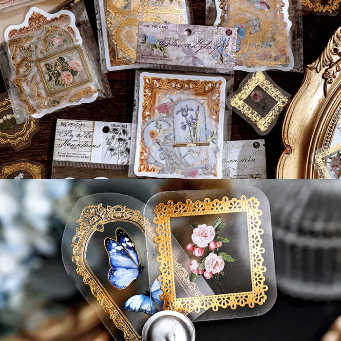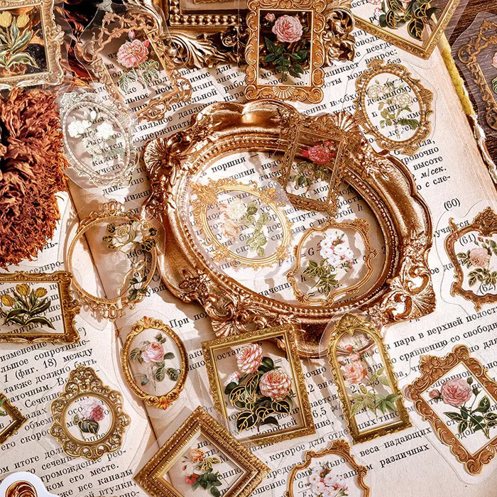 30枚 シール 透明 額縁 フレーム フラワー 花 アンティーク ビンテージ デコステッカー アンティーク調 コラージュ レトロ 0855-5