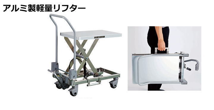 持ち運びを主眼に置いたリフター台車です。耐荷重は低いですが50kg前後の荷物であればリフター台車の機能を生かし効率的なリフター