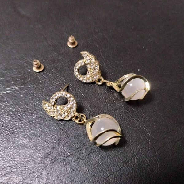ピアス S925針 ゴールド 白鳥 スワン レディース 韓国 鳥 スタッド ラインストーン ドロップ ビーズ キラキラ 綺麗 ジュエリー #C1950-2