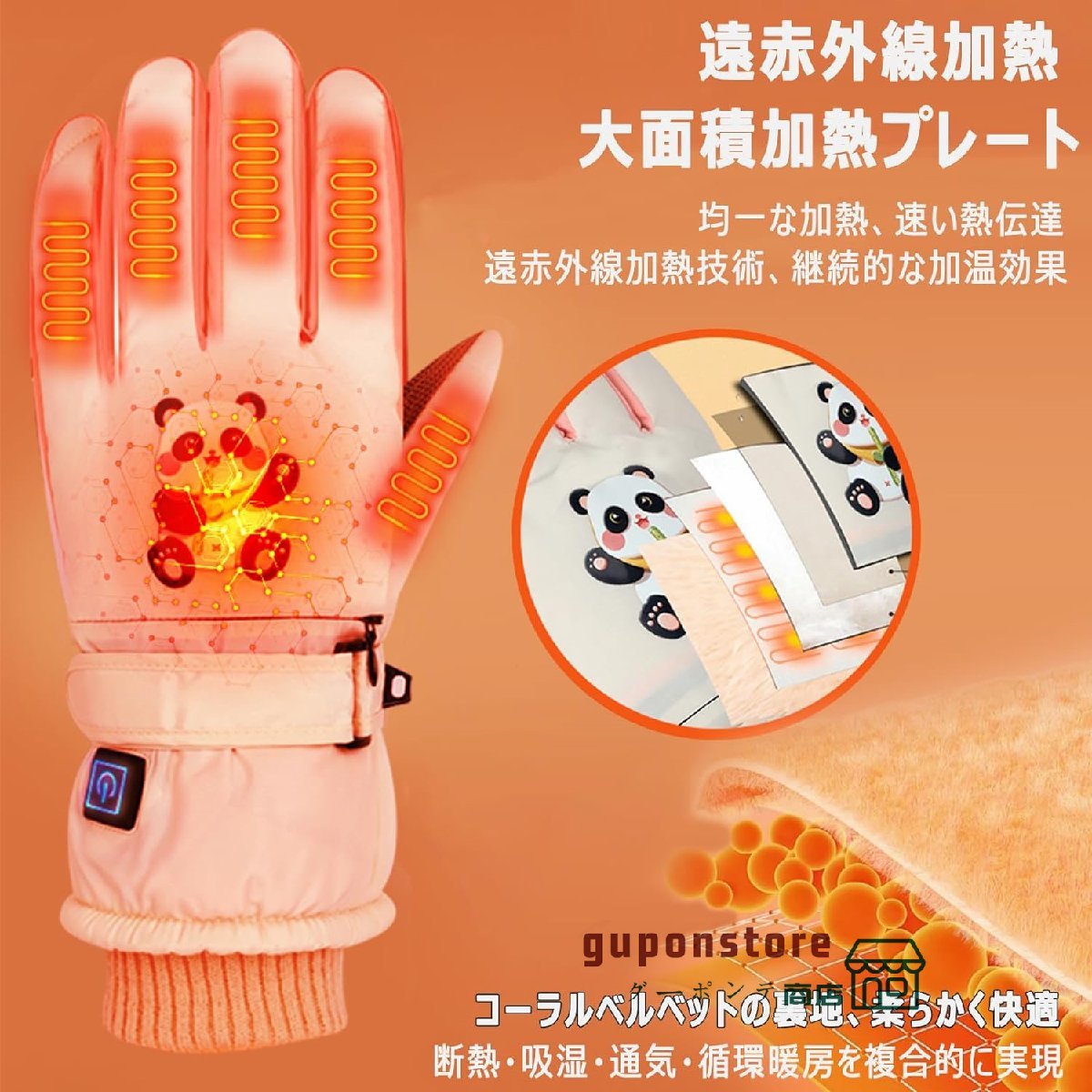 電熱グローブ 電熱手袋 10秒速熱 3段階温度調節 40-55℃発熱 防水防風防寒対策 加熱グローブ 防寒手袋 登山 除雪 釣り 通勤 スキー