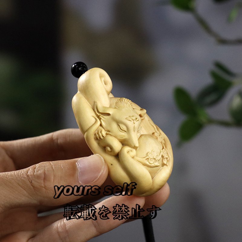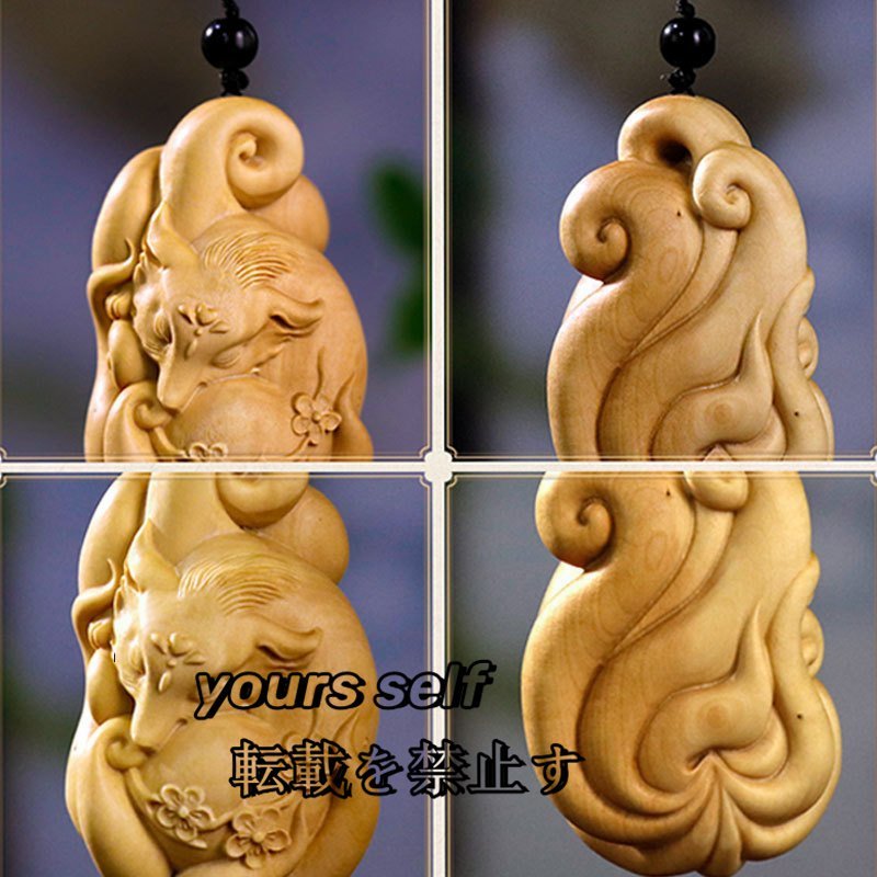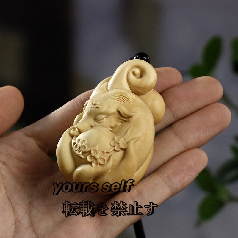 人気商品柘植の木製の置物 立体的な梅・九尾の狐の木彫 彫刻工芸 手づくり 装飾品 工芸品
