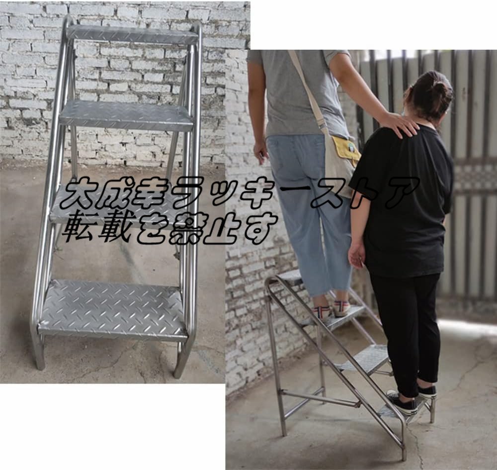 良い品質 産業用折りたたみ式ステンレス鋼踏み台 家庭用階段 耐荷重150kg ステンレス踏台4段はしご 滑り止め ポータブル 大人/子供兼用