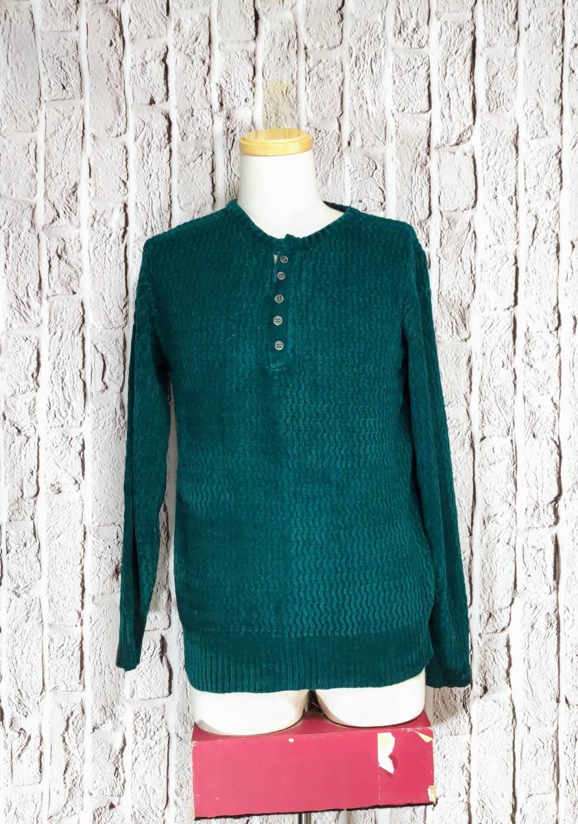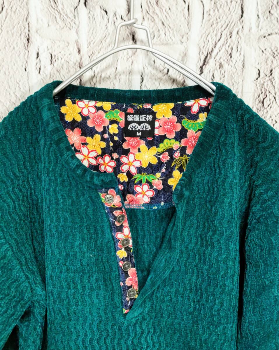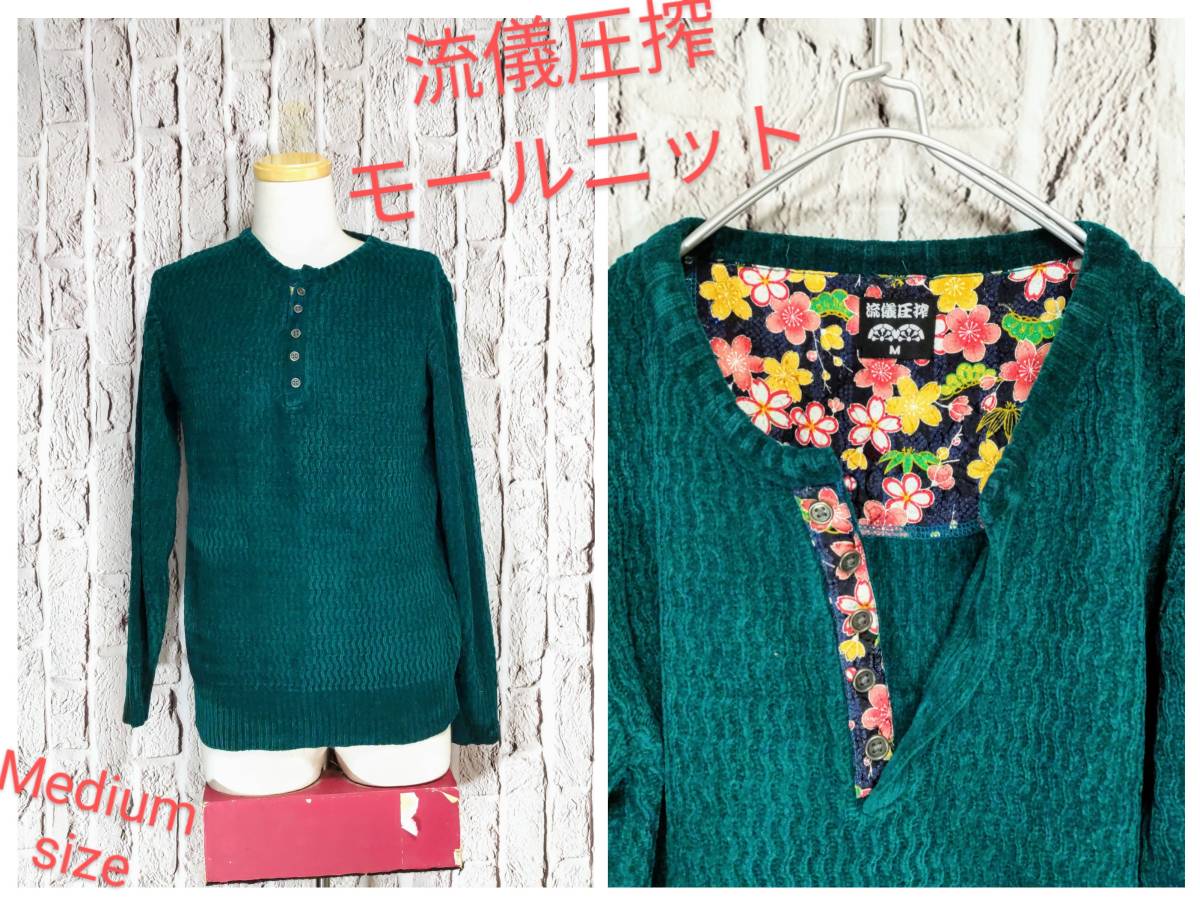 ★送料無料★ 流儀圧搾 モールニット セーター メンズ ニットセーター 和柄 グリーン Medium